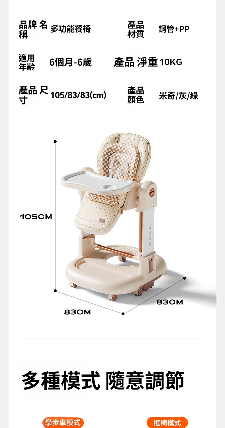 三合一宝宝餐椅摇椅多功能学步车家用婴儿餐桌座椅儿童吃饭椅子