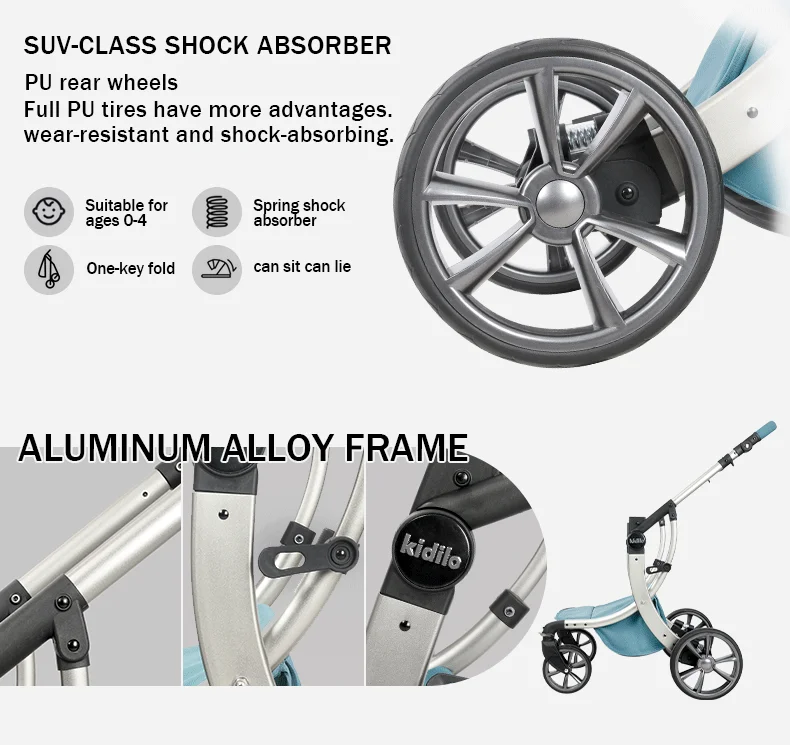 0-3 Years 3 in 1 Kidilo Baby Stroller with Car Seat, Non-Toxic Durable Foldable Travel Stroller for Toddlers Family Trips 609