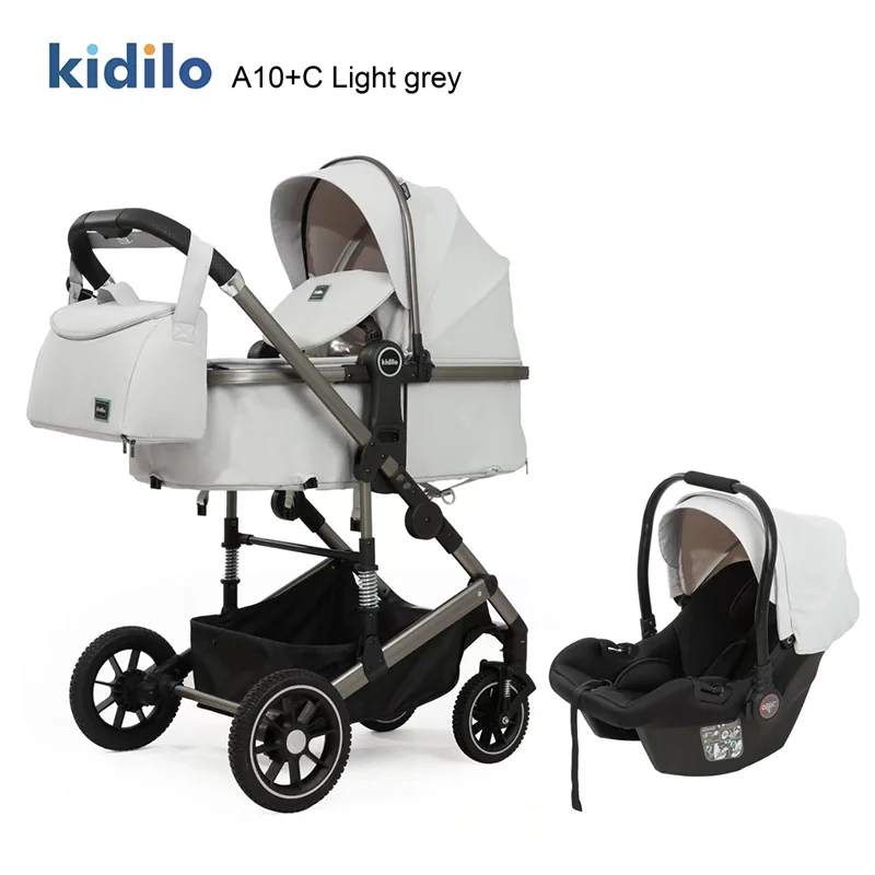 0-3 Years 3 in 1 Kidilo Baby Stroller with Car Seat, Non-Toxic Durable Foldable Travel Stroller for Toddlers Family Trips A10+C