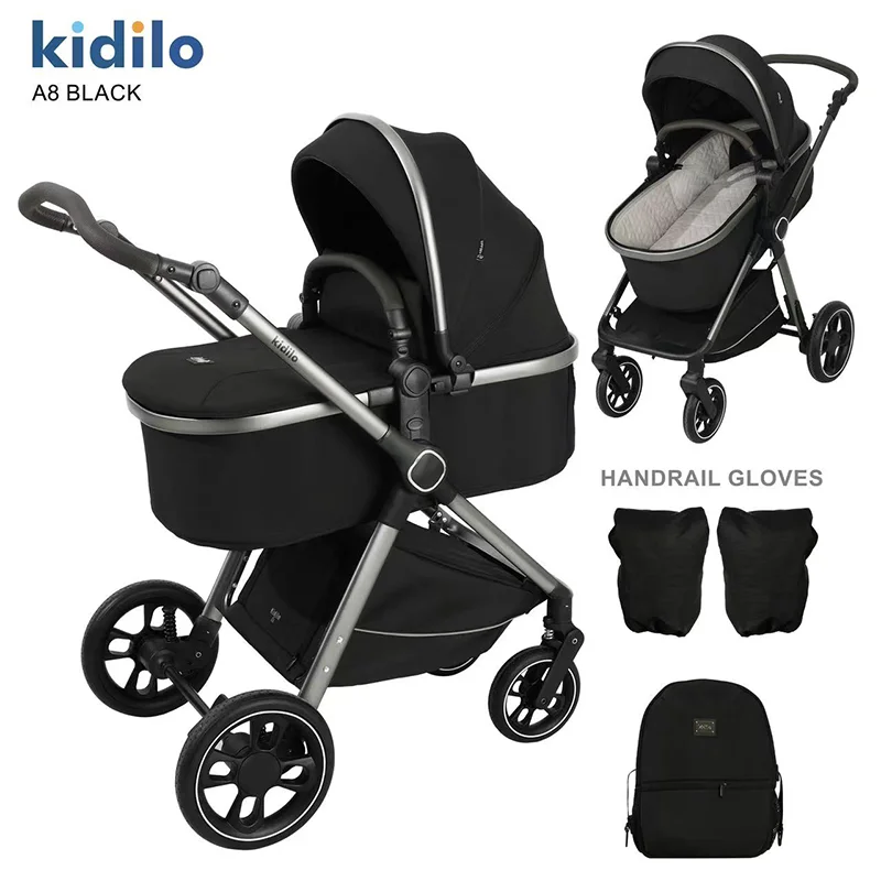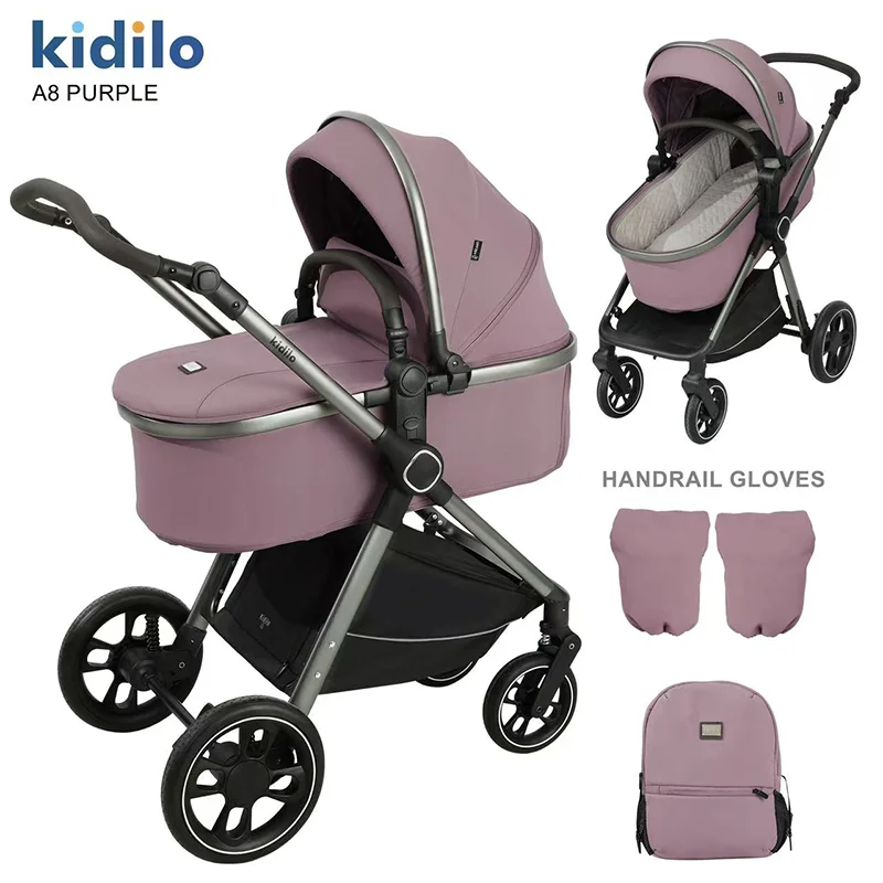 0-3 Years 3 in 1 Kidilo Baby Stroller with Car Seat, Non-Toxic Durable Foldable Travel Stroller for Toddlers Family Trips A8