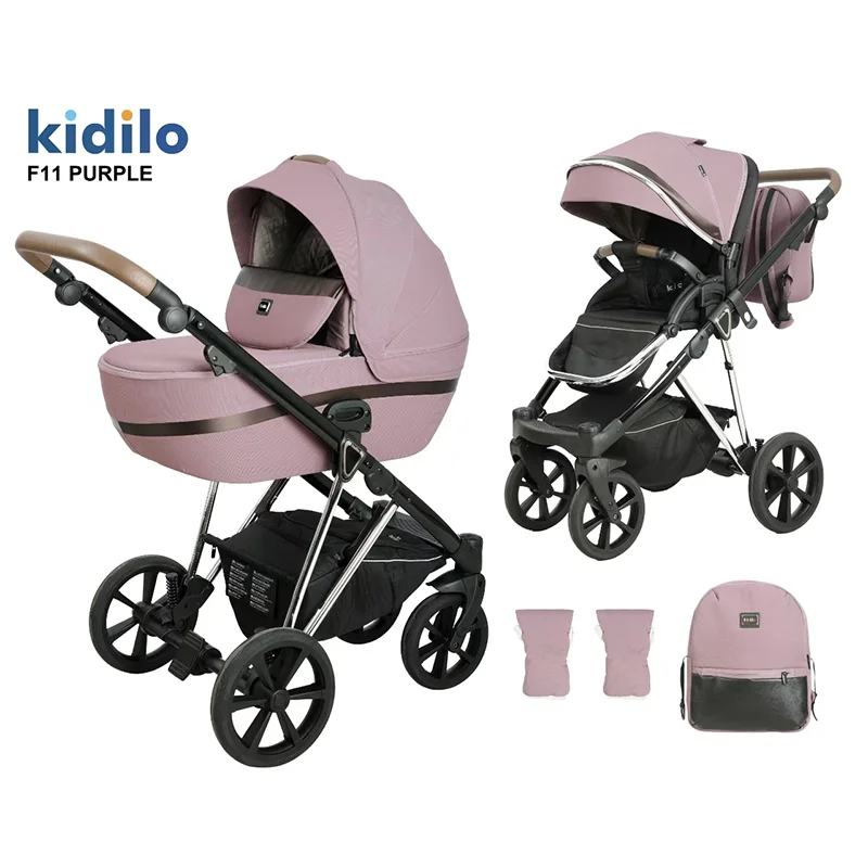 0-3 Years 3 in 1 Kidilo Baby Stroller with Car Seat, Non-Toxic Durable Foldable Travel Stroller for Toddlers Family Trips F11