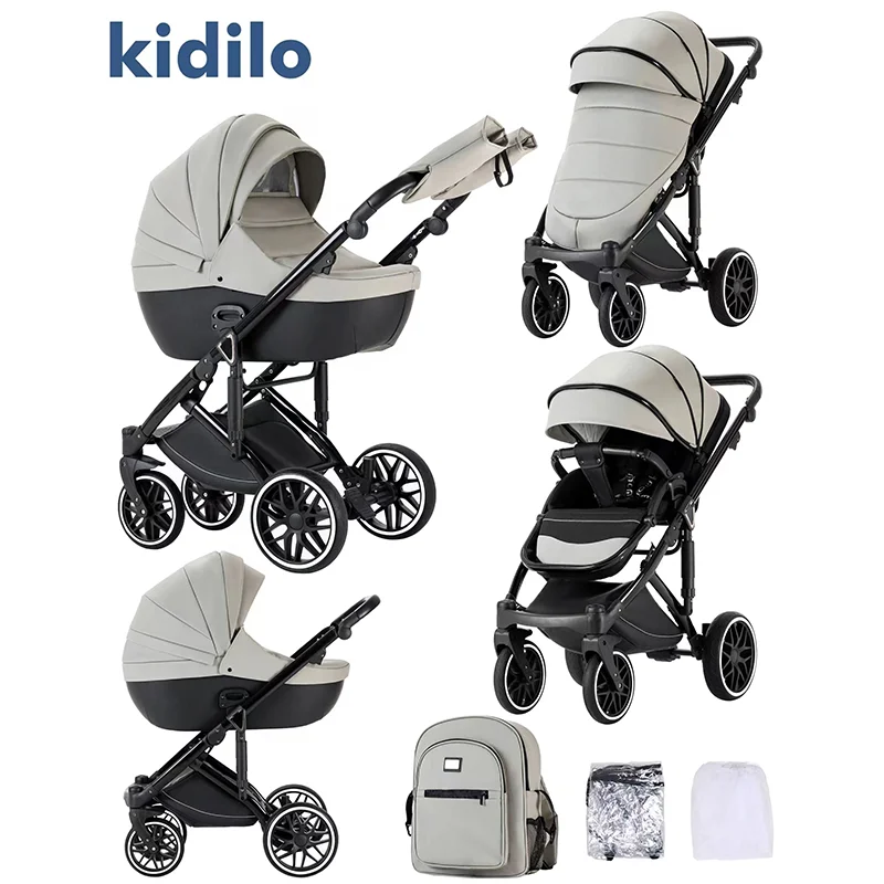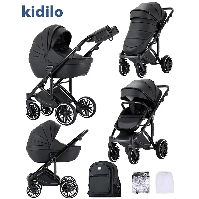 0-3 Years 3 in 1 Kidilo Baby Stroller with Car Seat, Non-Toxic Durable Foldable Travel Stroller for Toddlers Family Trips F2