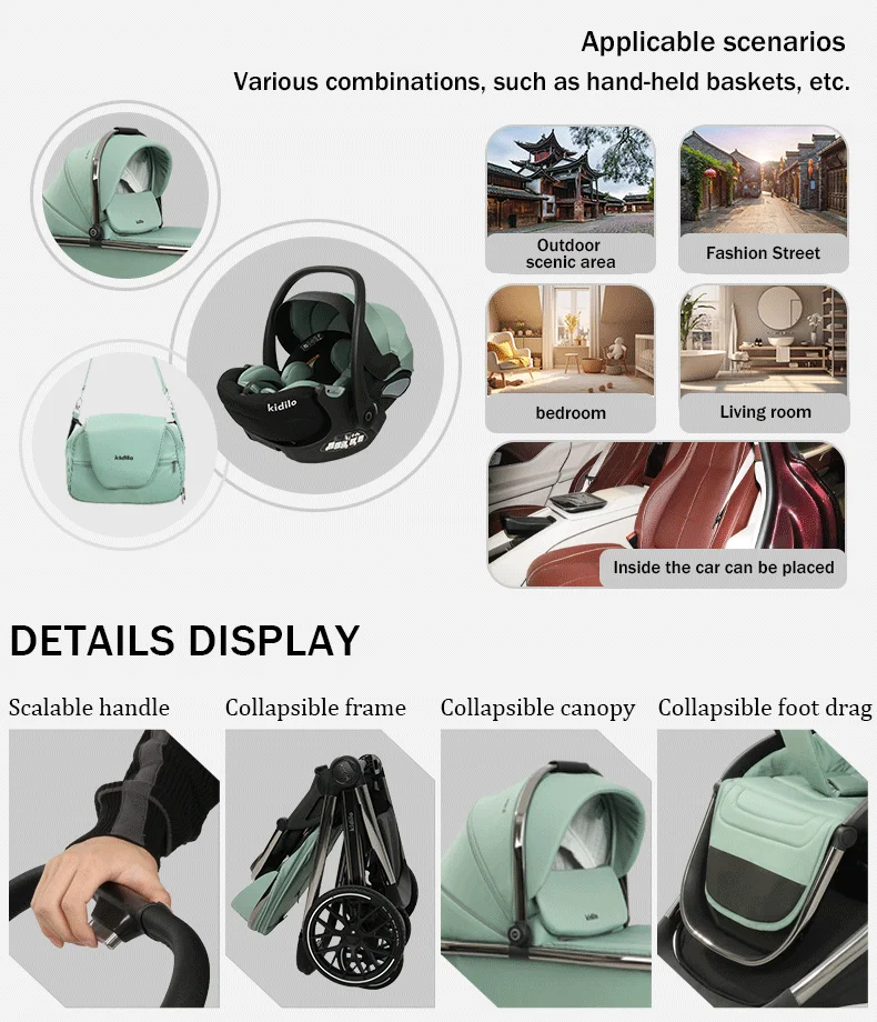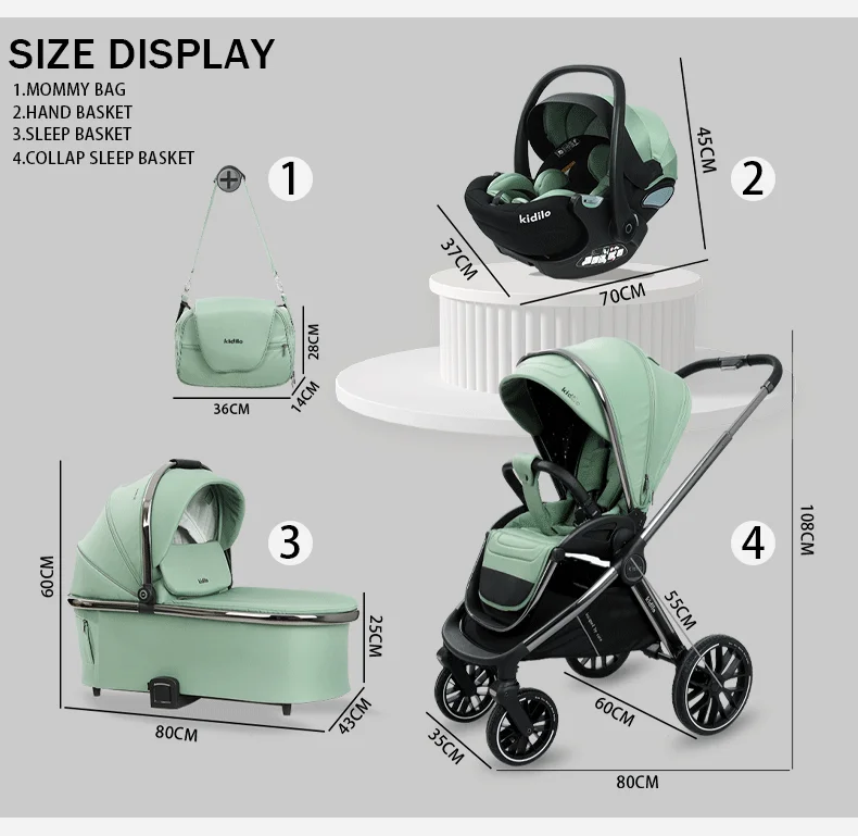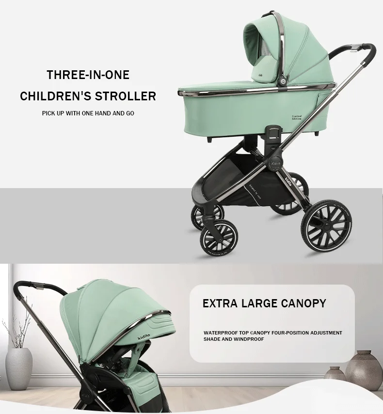0-3 Years 3 in 1 Kidilo Baby Stroller with Car Seat, Non-Toxic Durable Foldable Travel Stroller for Toddlers Family Trips G100+C