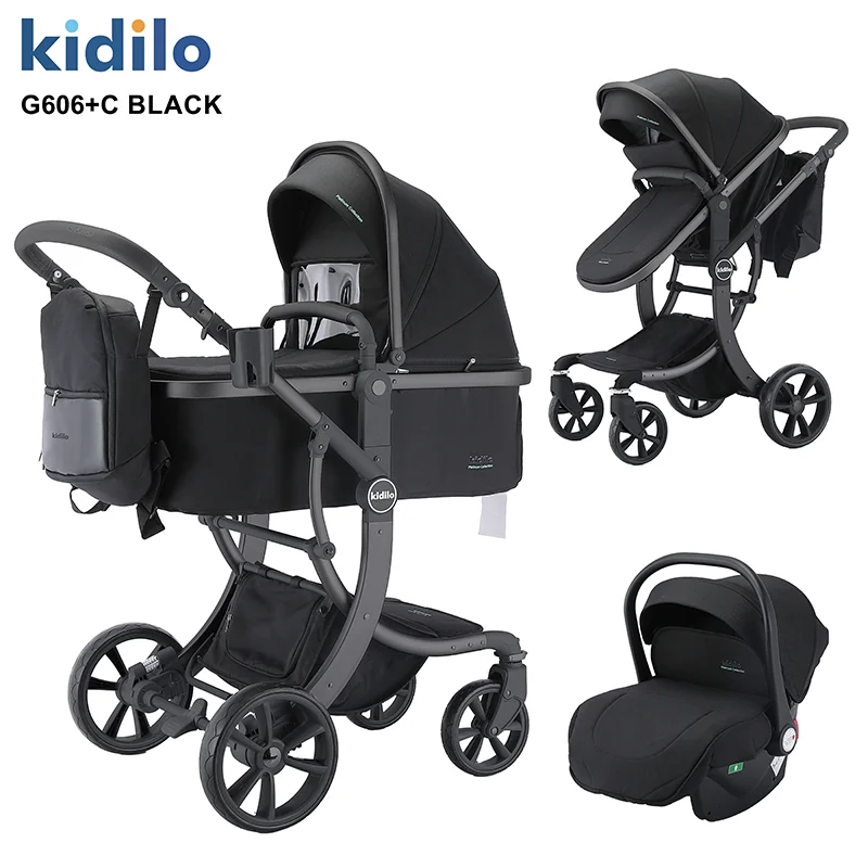 0-3 Years 3 in 1 Kidilo Baby Stroller with Car Seat, Non-Toxic Durable Foldable Travel Stroller for Toddlers Family Trips G606+C
