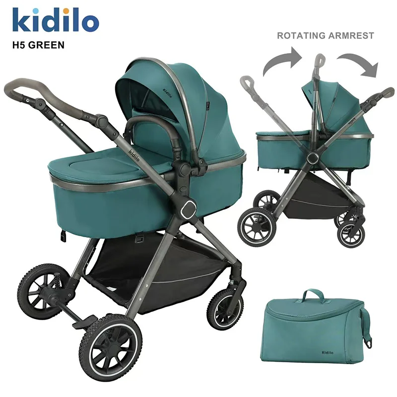 0-3 Years 3 in 1 Kidilo Baby Stroller with Car Seat, Non-Toxic Durable Foldable Travel Stroller for Toddlers Family Trips H5