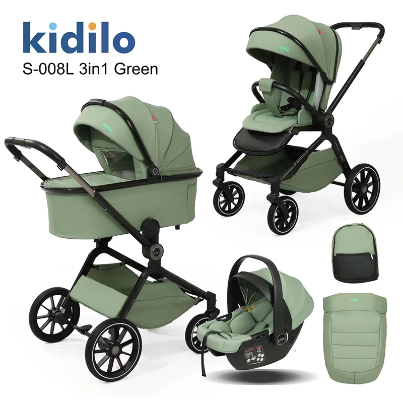 0-3 Years 3 in 1 Kidilo Baby Stroller with Car Seat, Non-Toxic Durable Foldable Travel Stroller for Toddlers Family Trips S-008L