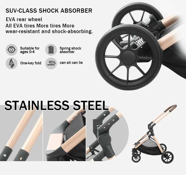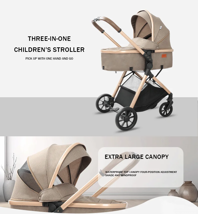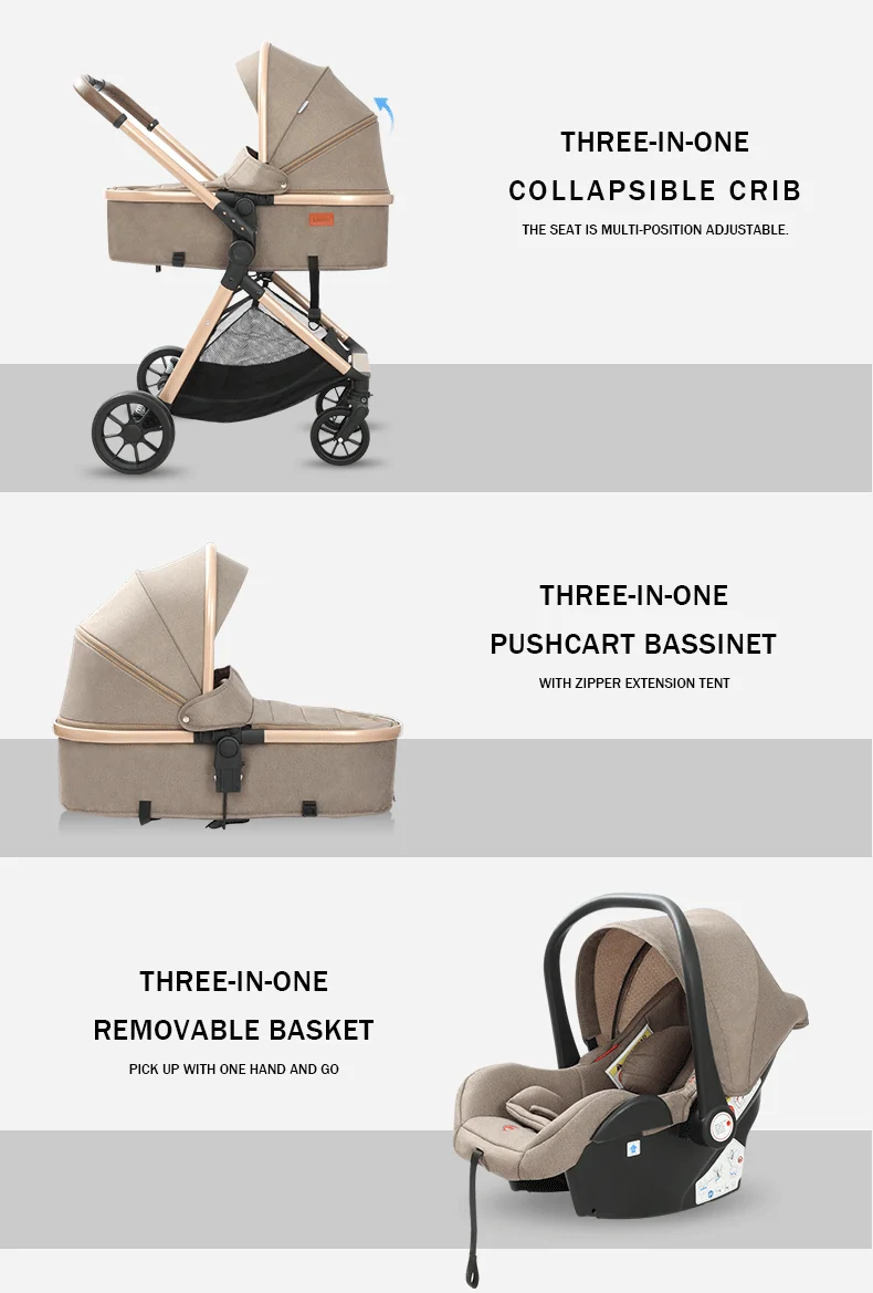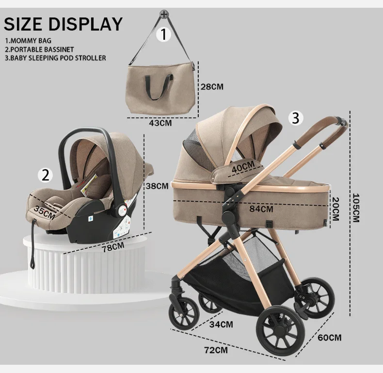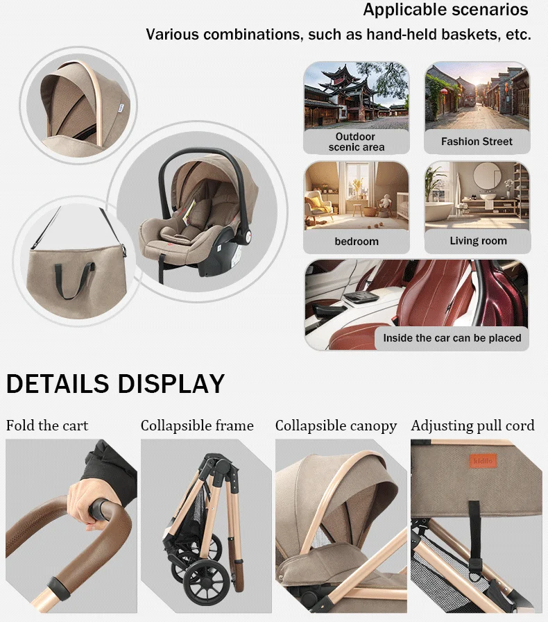 0-3 Years 3 in 1 Kidilo Baby Stroller with Car Seat, Non-Toxic Durable Foldable Travel Stroller for Toddlers Family Trips V5+C