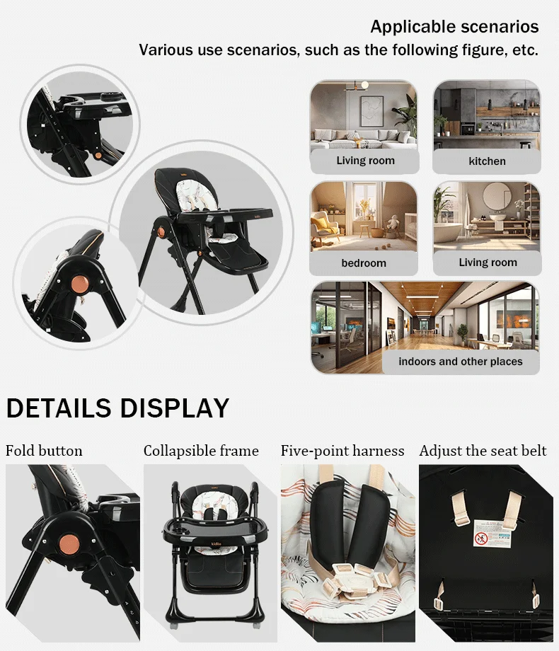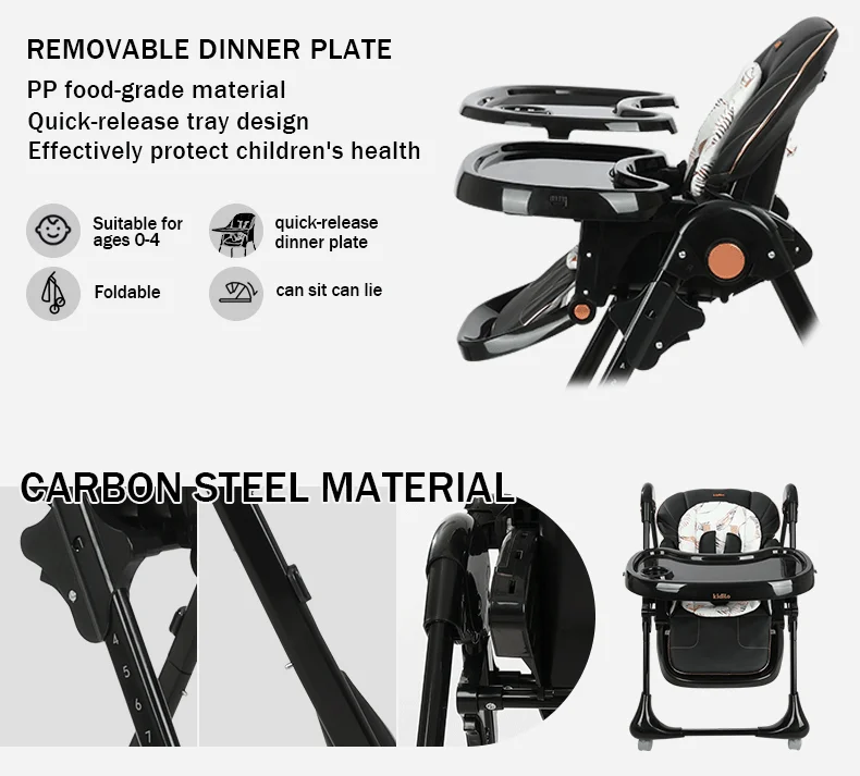 6-36 Months 3 in 1 Foldable Baby High Chair for Baby, Non-Toxic Feeding Chair for Toddler Dining at Home & Small Space KD003