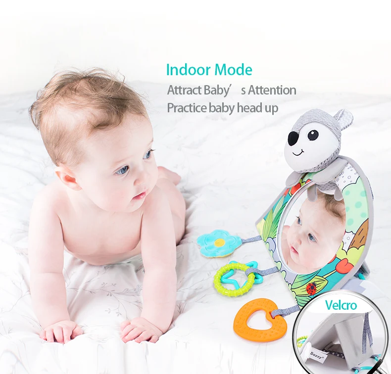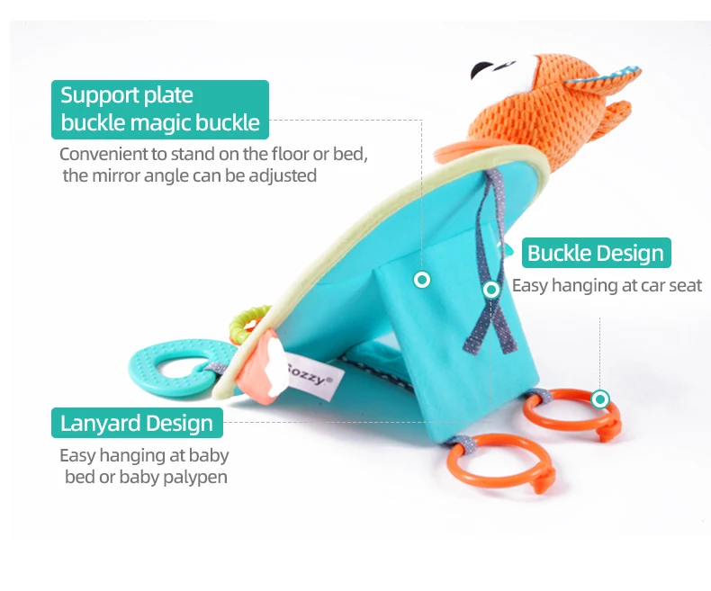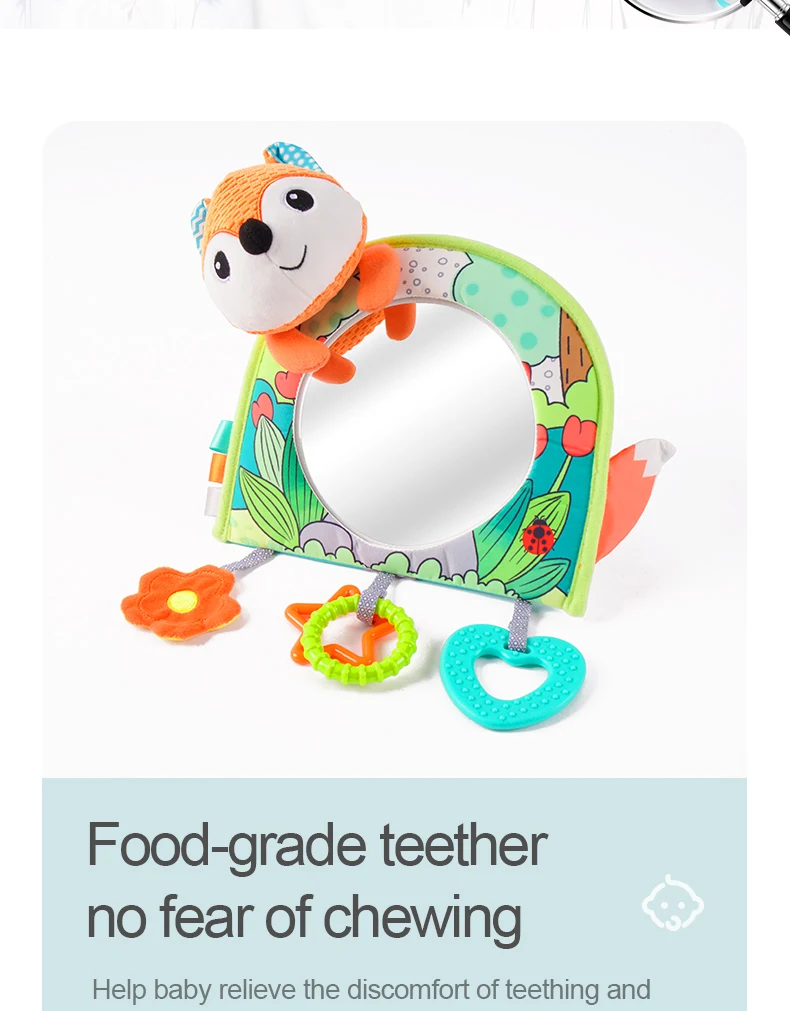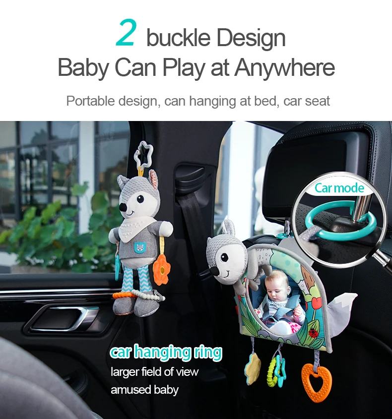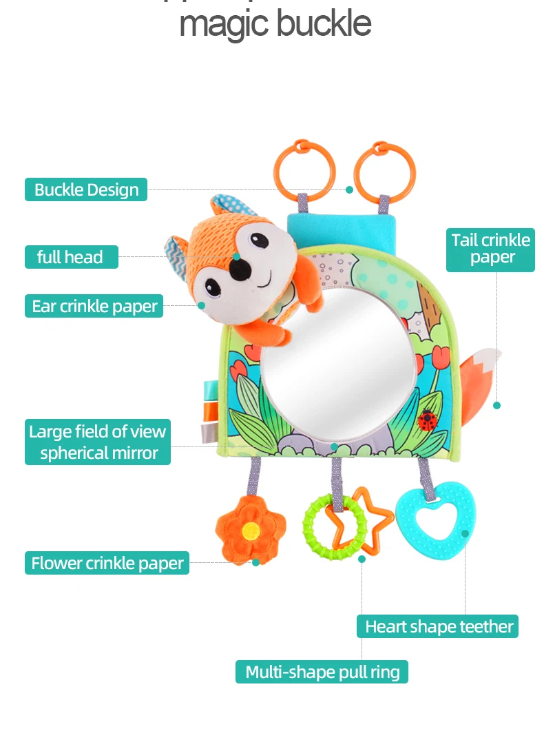 Animal Fox Soft Plush Hanging Rattle Baby Stroller & Car Seat Toy Tummy Time Mirror & Teethers Toy