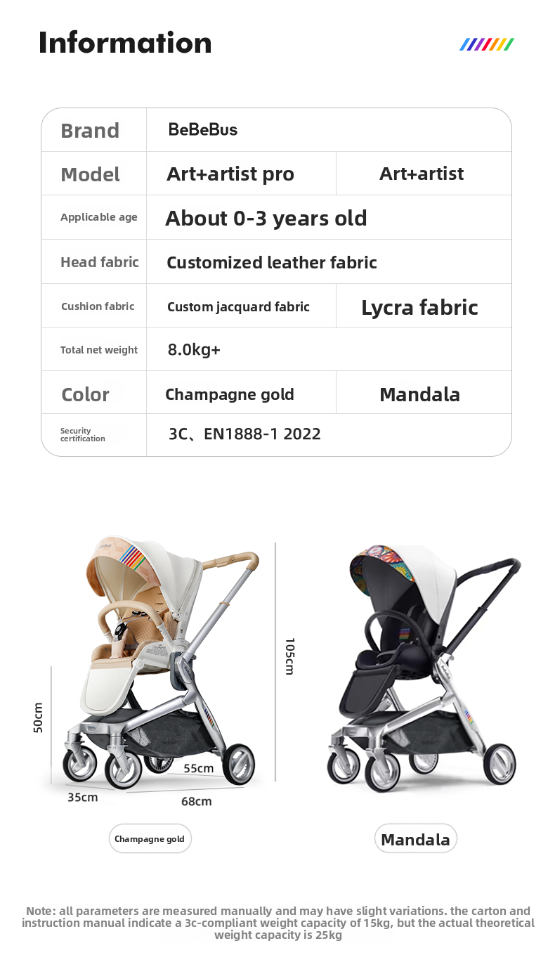 BeBeBus Artist Newborn baby stroller Baby stroller Children 0 to 3 years old Two-way sitting and lying down Lightweight folding