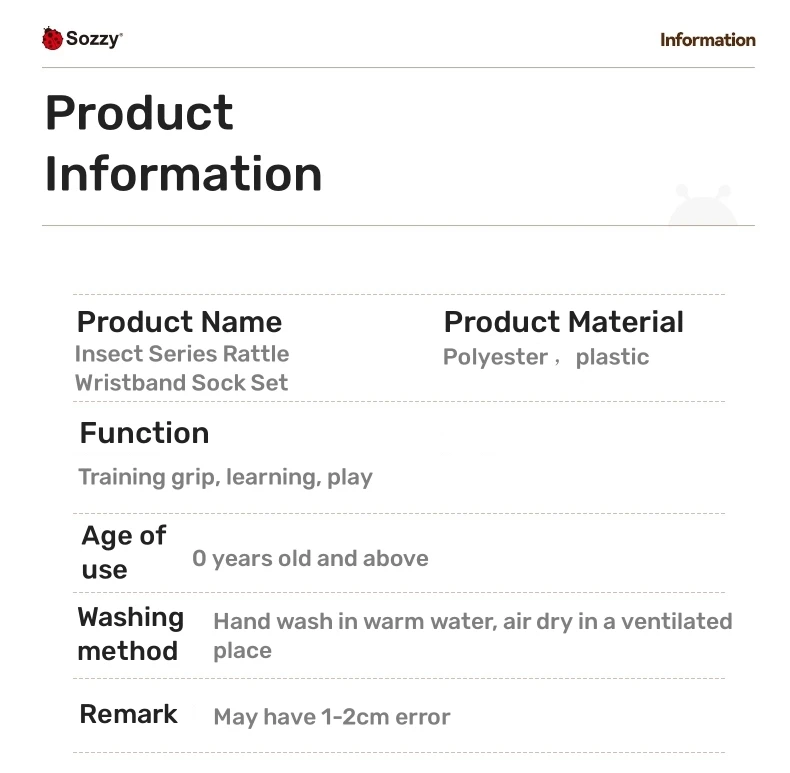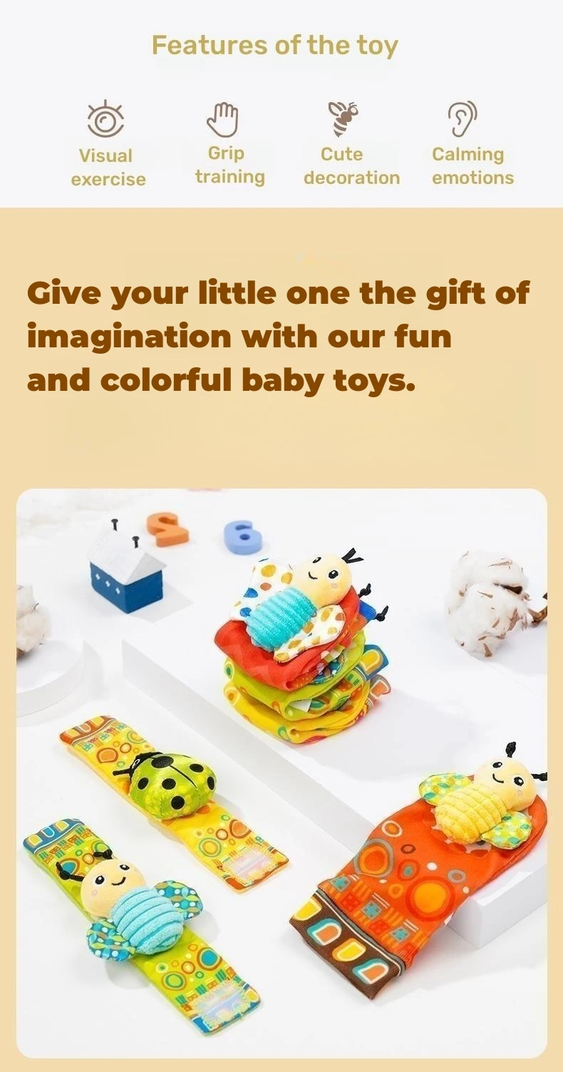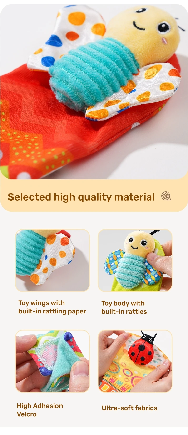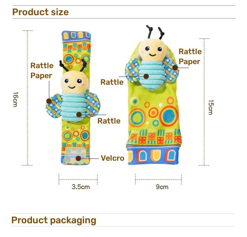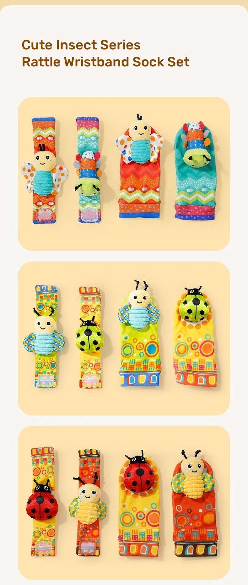 Custom Hand and Feet Baby Rattles Soft Baby Plush Insect Animal Foot Rattle Baby Socks Wrist Rattles Set for Newborn