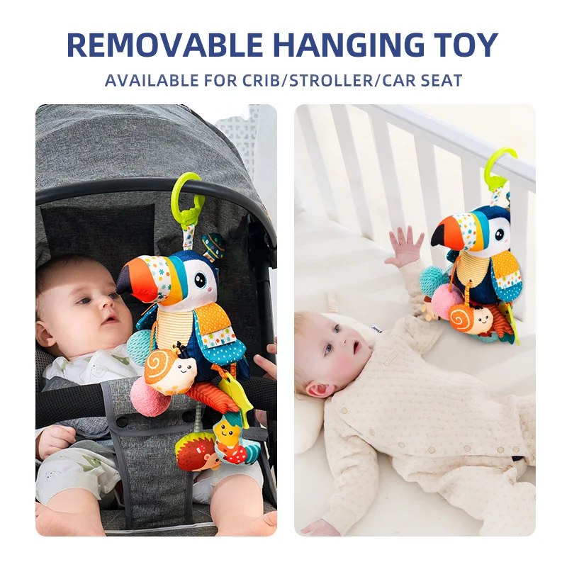 Custom Plush Animal Rattle Montessori Pull String Toy Car Seat Stroller Hanging Toy Vibrator Exercise Touch Toy