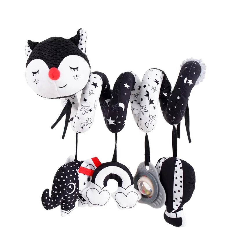 Custom Sozzy Soft Animal Fox Hanging Soft Animal Plush Baby Spiral Bed Toys Baby High Contrast Activity Stroller Toys