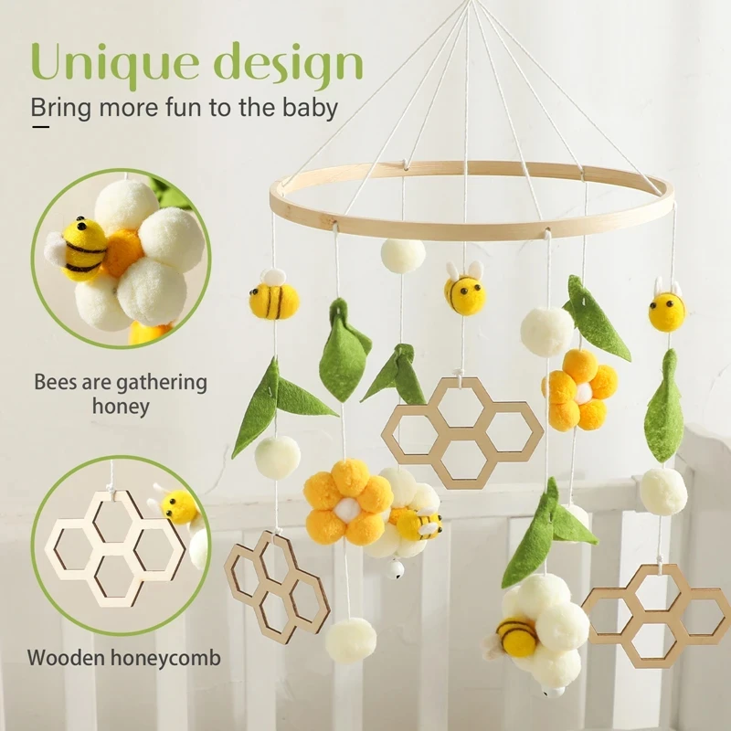 Customization Bee Animal Nursery Decoration Wooden Hanging Toy Baby Musical Crib Mobile Toys for Bed Crib
