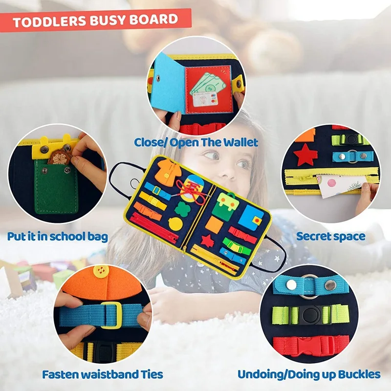 Customization OEM/ODM Toddler Montessori Fine Motor Skill Basic Skill Training Learning Felt Busy Board for Kids 1-6 Years