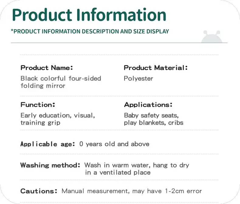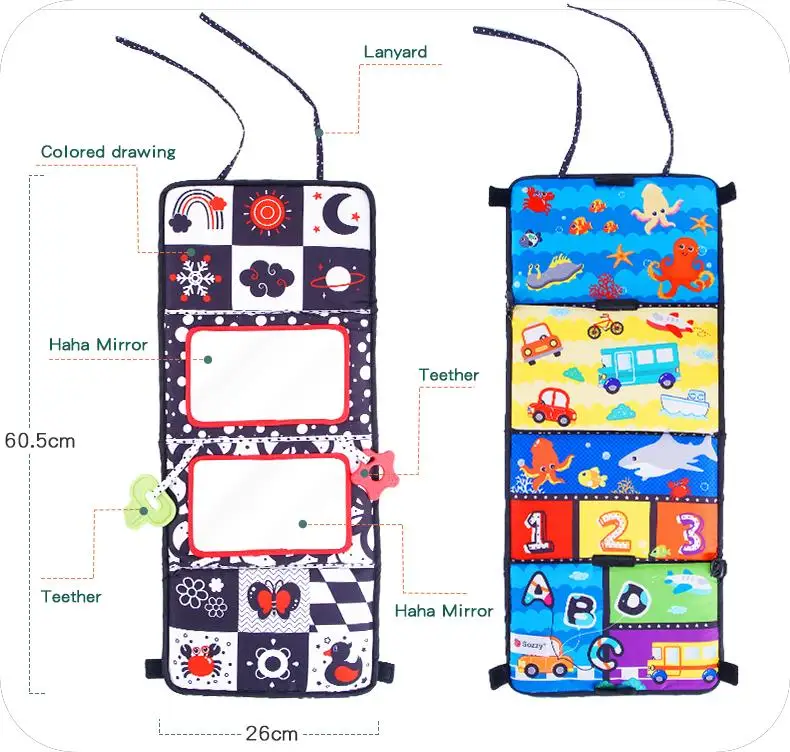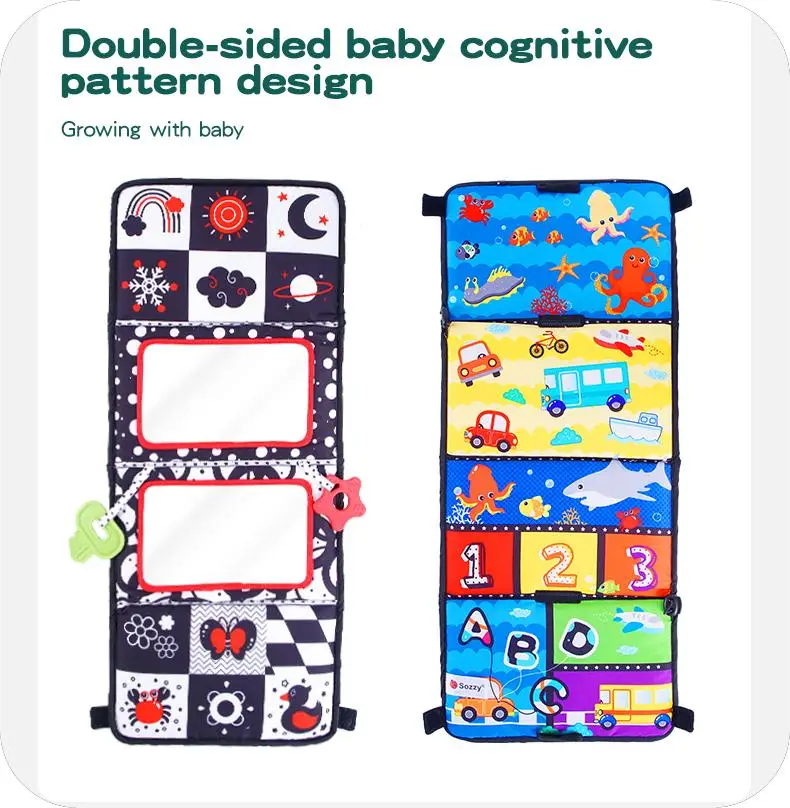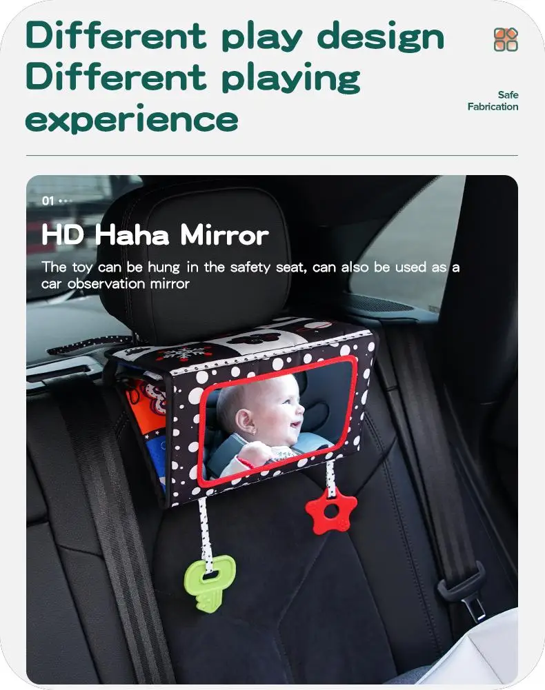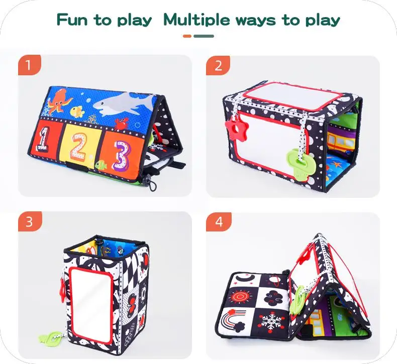 Fox Animal Black and White High Contrast Baby Toy with Teethers Tummy Time Floor Mirror for Infant Toddler