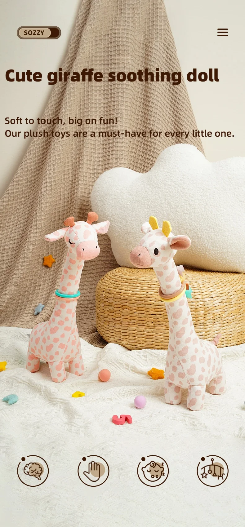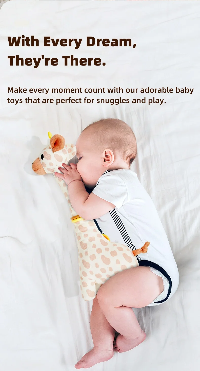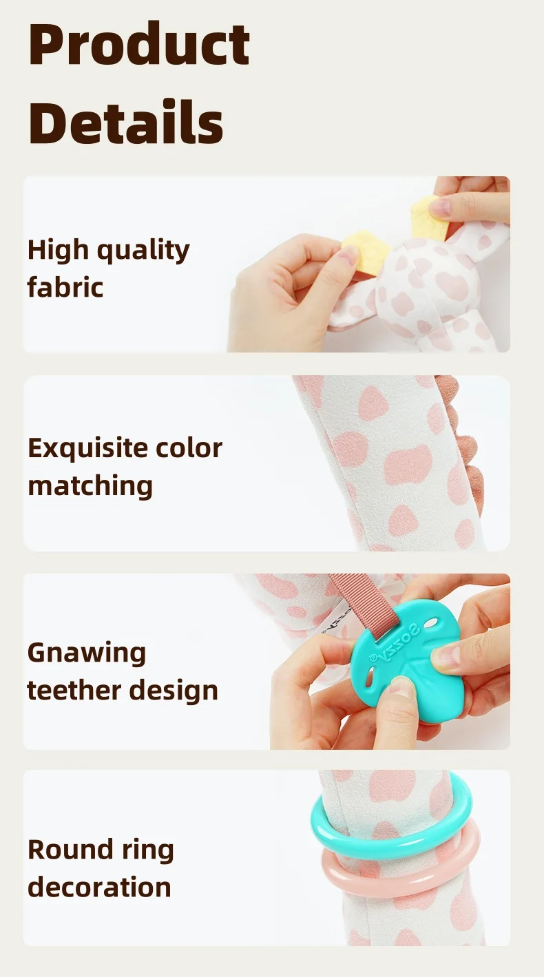 Jollybaby 2025 Soft Plush Animal Giraffe Toy Sensory Crinkle Hanging Soothing Car Seat Stroller Toy with Musical Feature