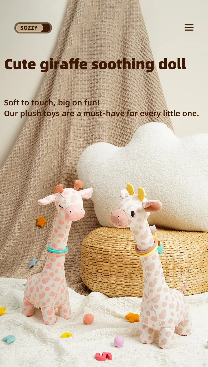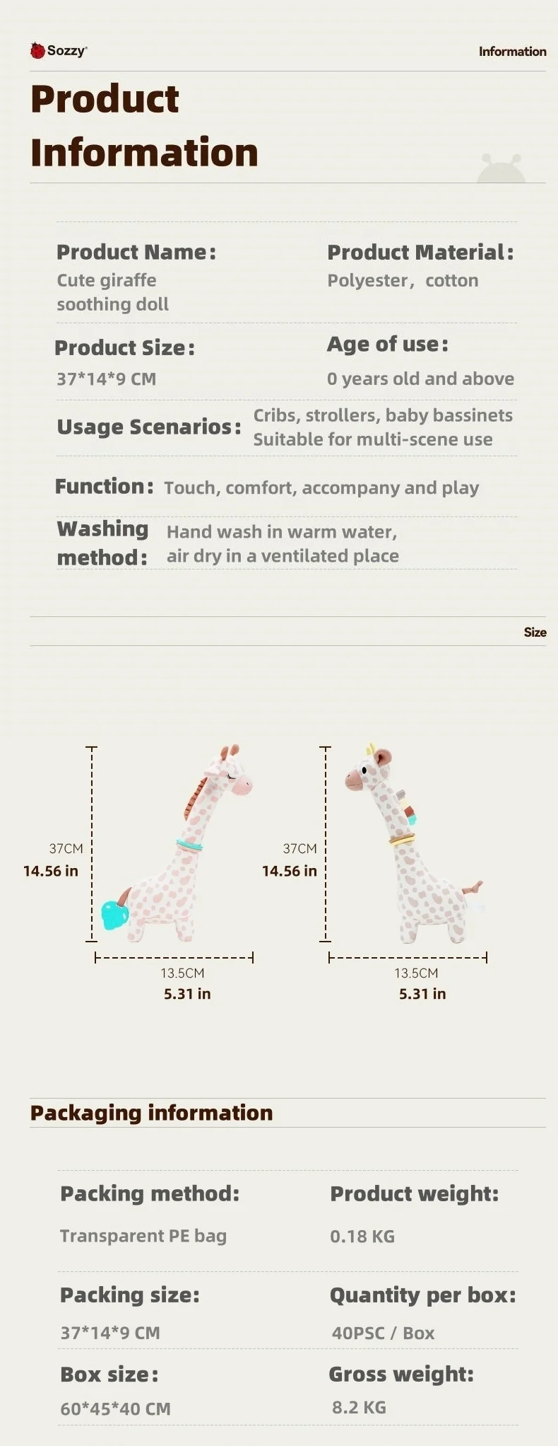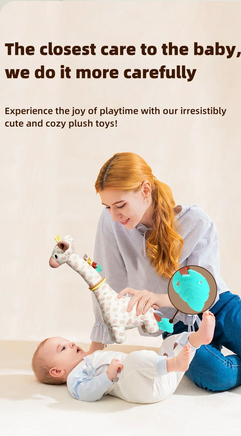 Jollybaby 2025 Soft Plush Animal Giraffe Toy Sensory Crinkle Hanging Soothing Car Seat Stroller Toy with Musical Feature
