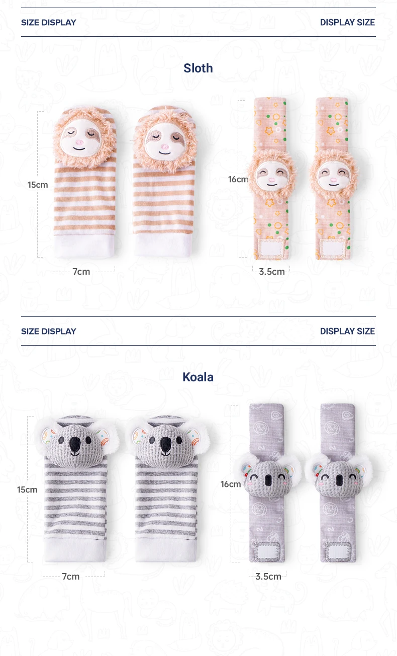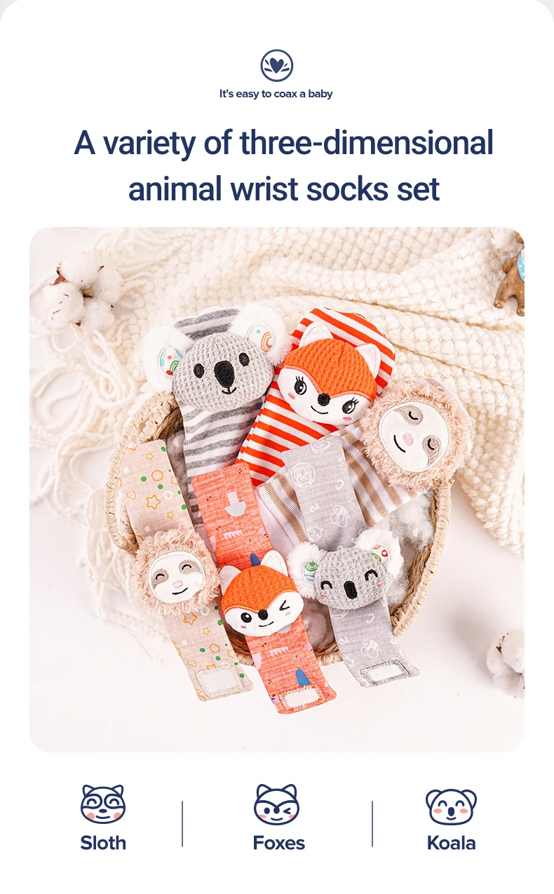Jollybaby 4-Pack Newborn Koala Animals Soft Stuffed Infant Wrist Rattles Baby Rattle Socks Toys Set Comfortable Toy Gift