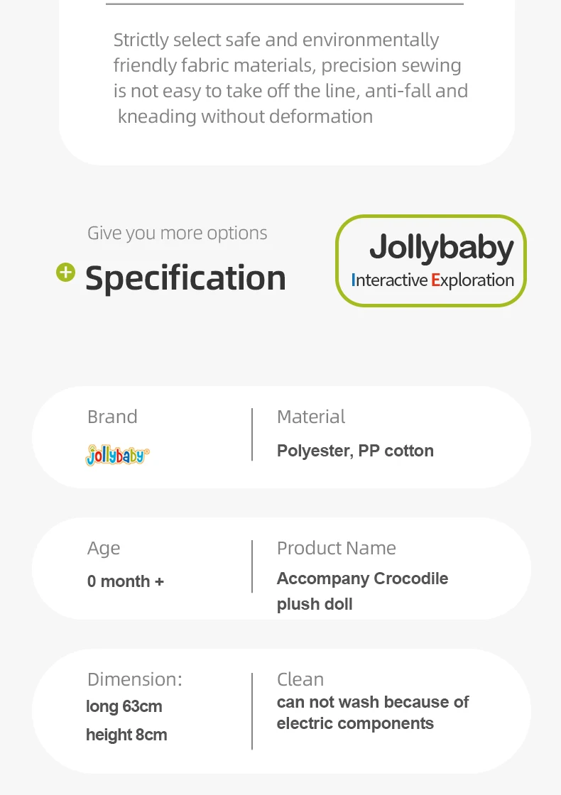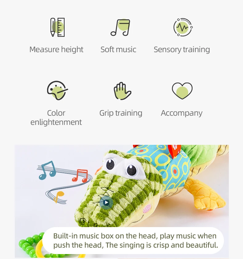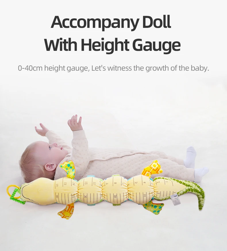 Jollybaby Animal crocodile Height Measurement Plush Toy Ruler Stuffed Multi-Textures Tummy Time Musical Toy with Rattles