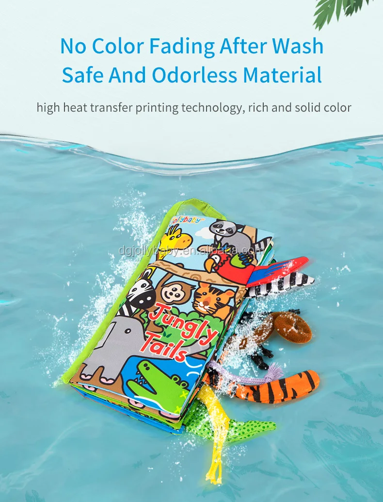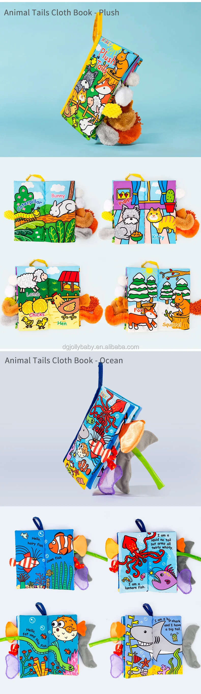 Jollybaby Custom 3D Animal Tail Soft Cotton Cloth Learning Book Cloths Made Baby Sensory Crinkle Cloth Book Set Educational Toy