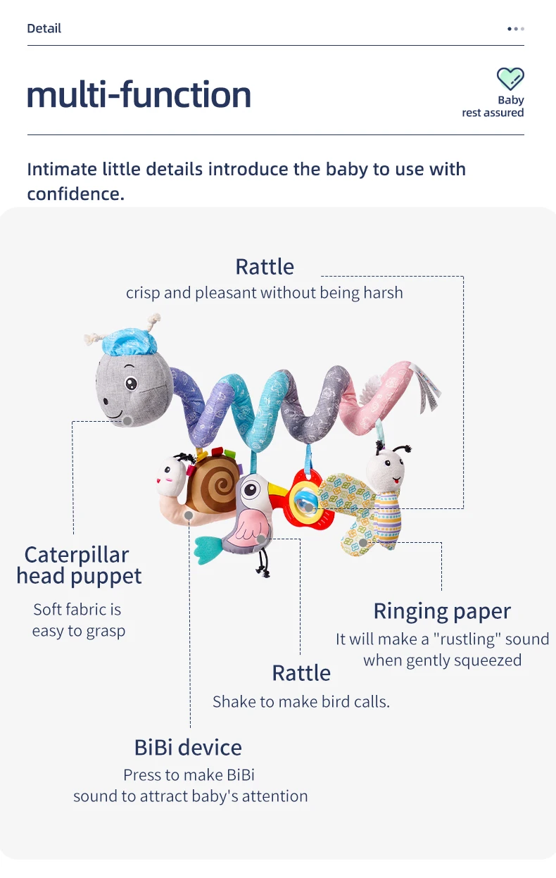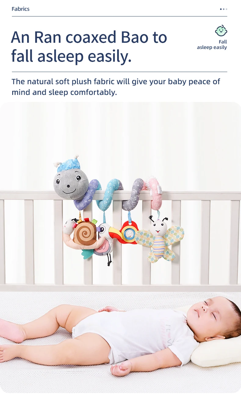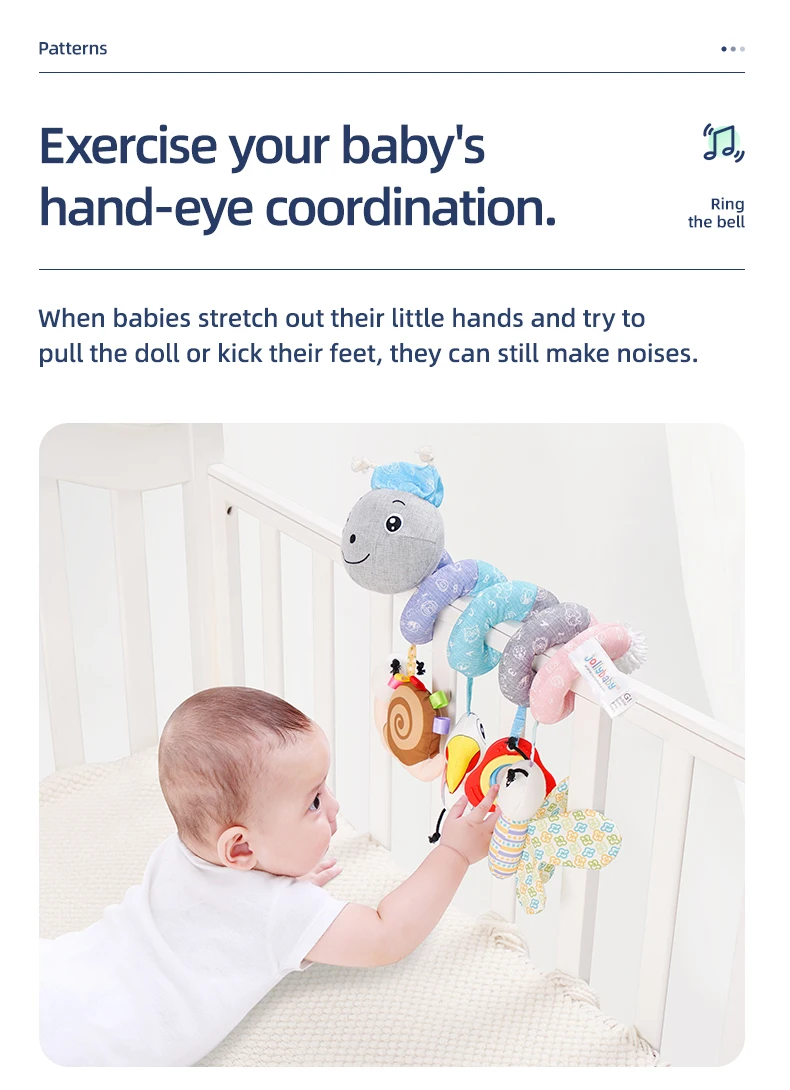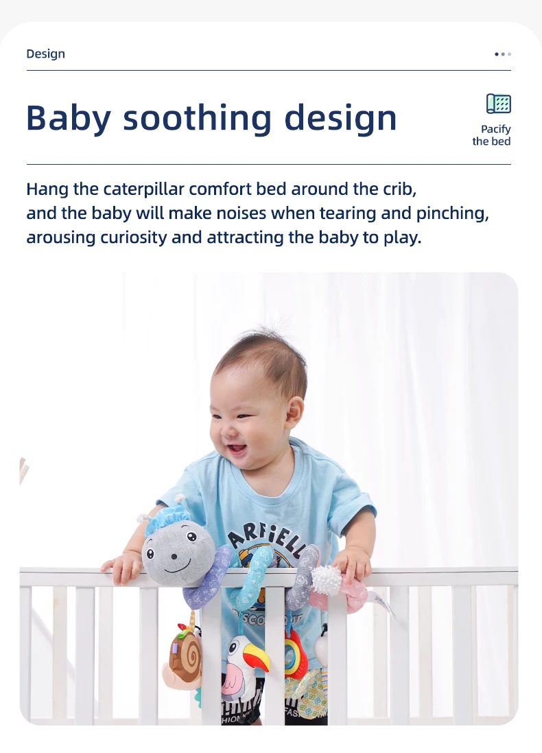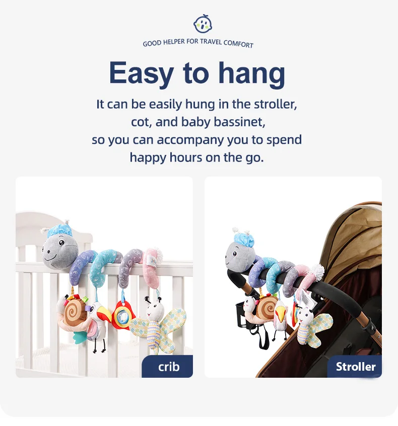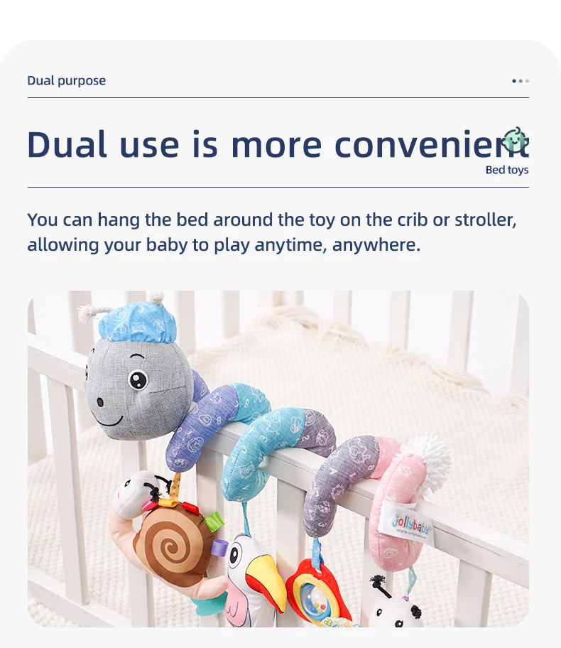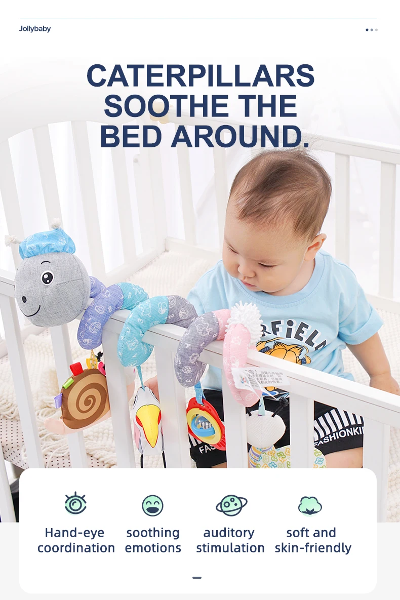 Jollybaby Custom Animal Caterpillar Spiral Stroller Activity Grey Spiral Baby Musical Hanging Toy Baby Spiral Bed Toys