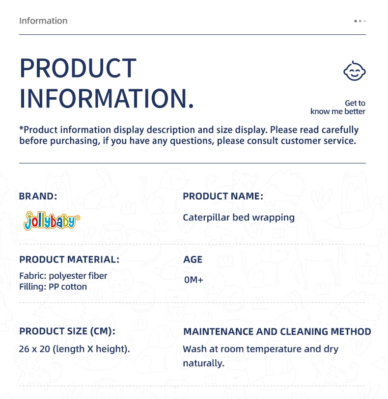 - We have a dedicated QC process, which regulates and focuses on every detail of the production process. - All the materials will be checked by sales and production management before using. - Each production line has a team leader to monitor quality. - Specialized quality controller check quality on finished products. Jollybaby will keep you posted on the updated order status in time!