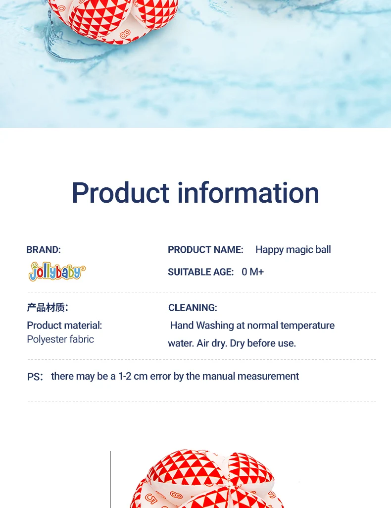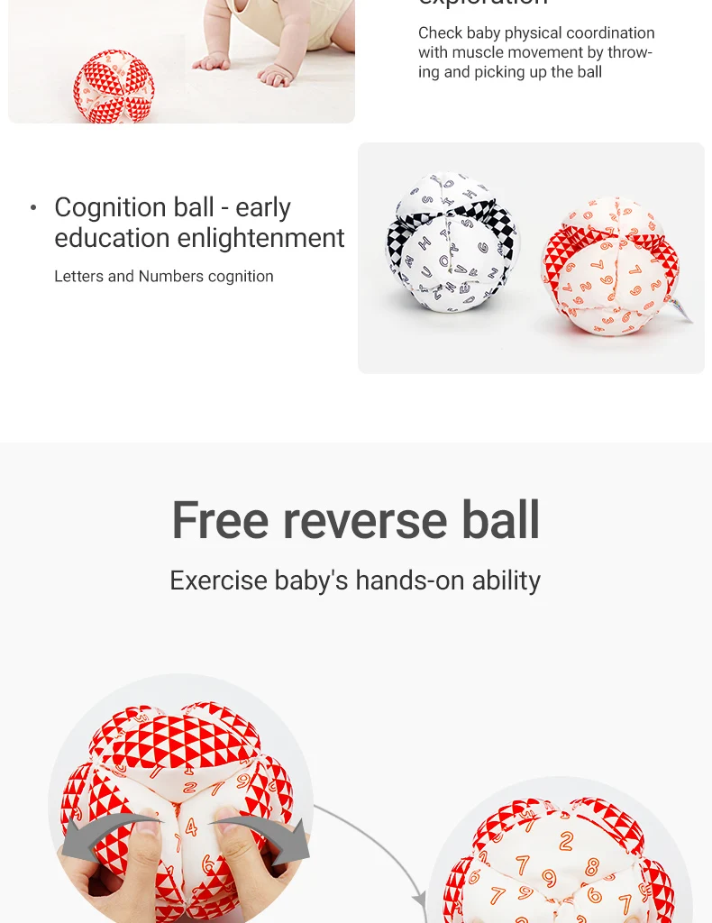 Jollybaby Custom Baby Happy Magic Stuffed Ball Baby Early Educational Cognitive Cloth Reversible Soft Plush Toy Ball