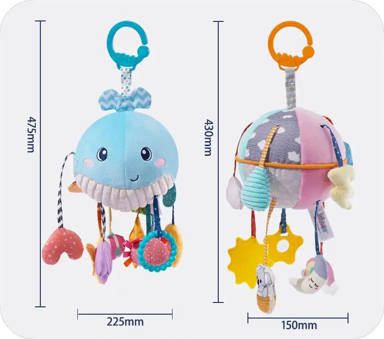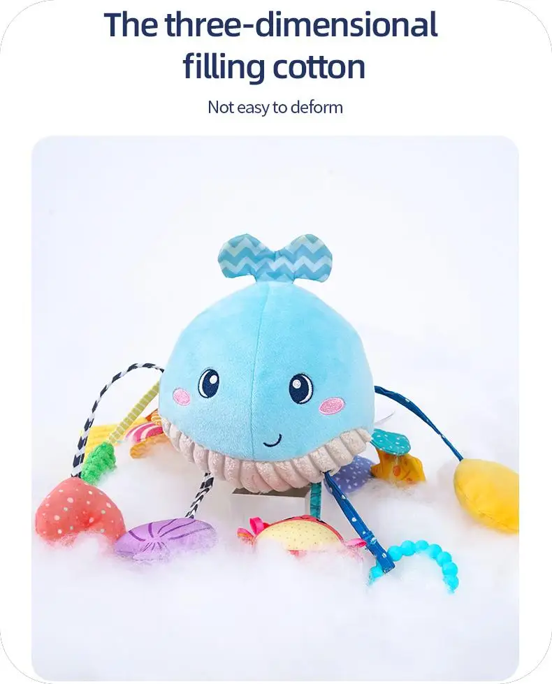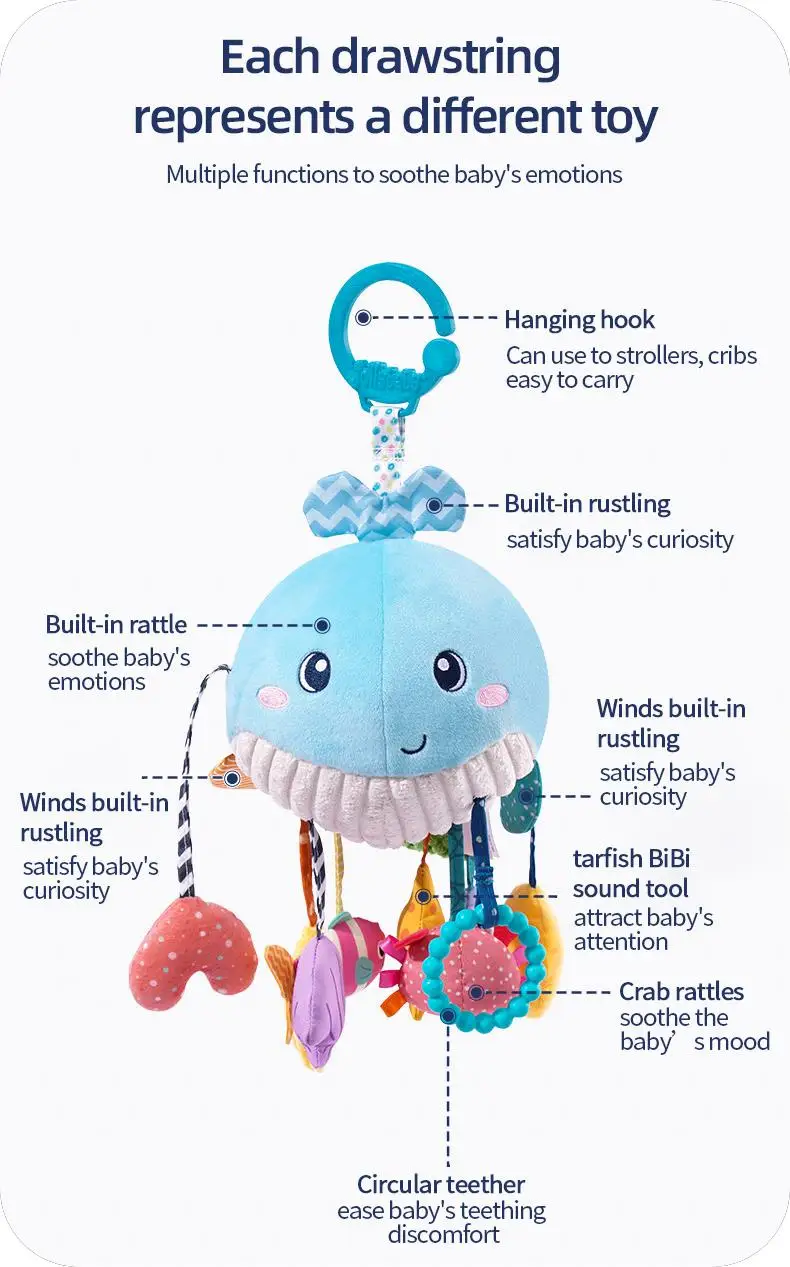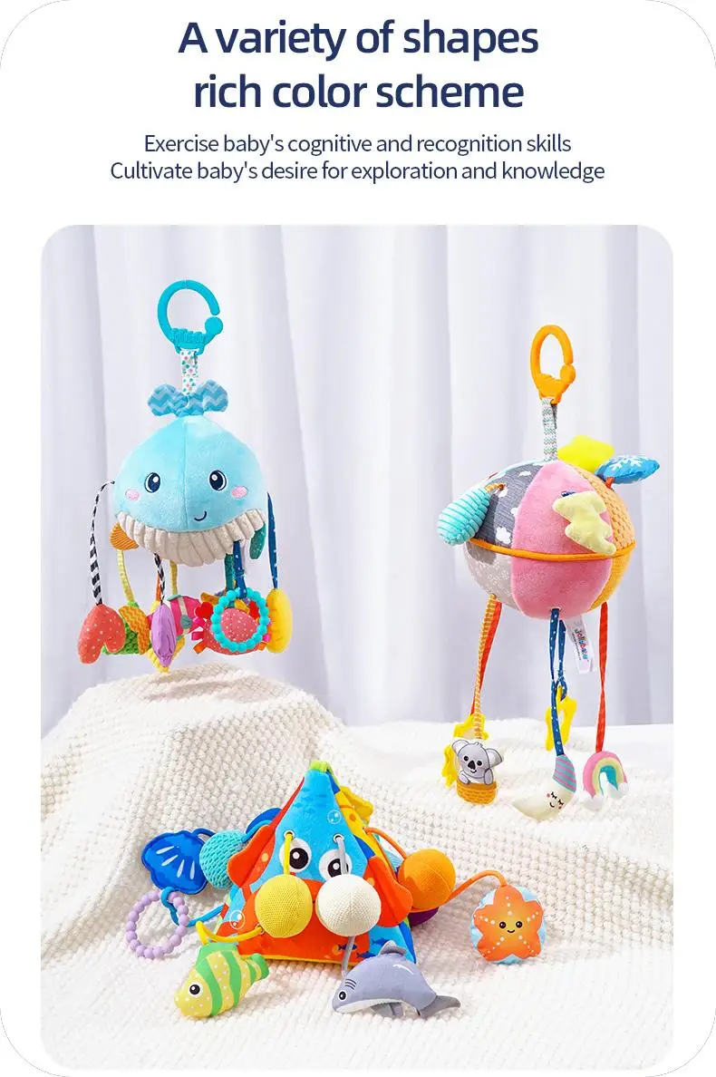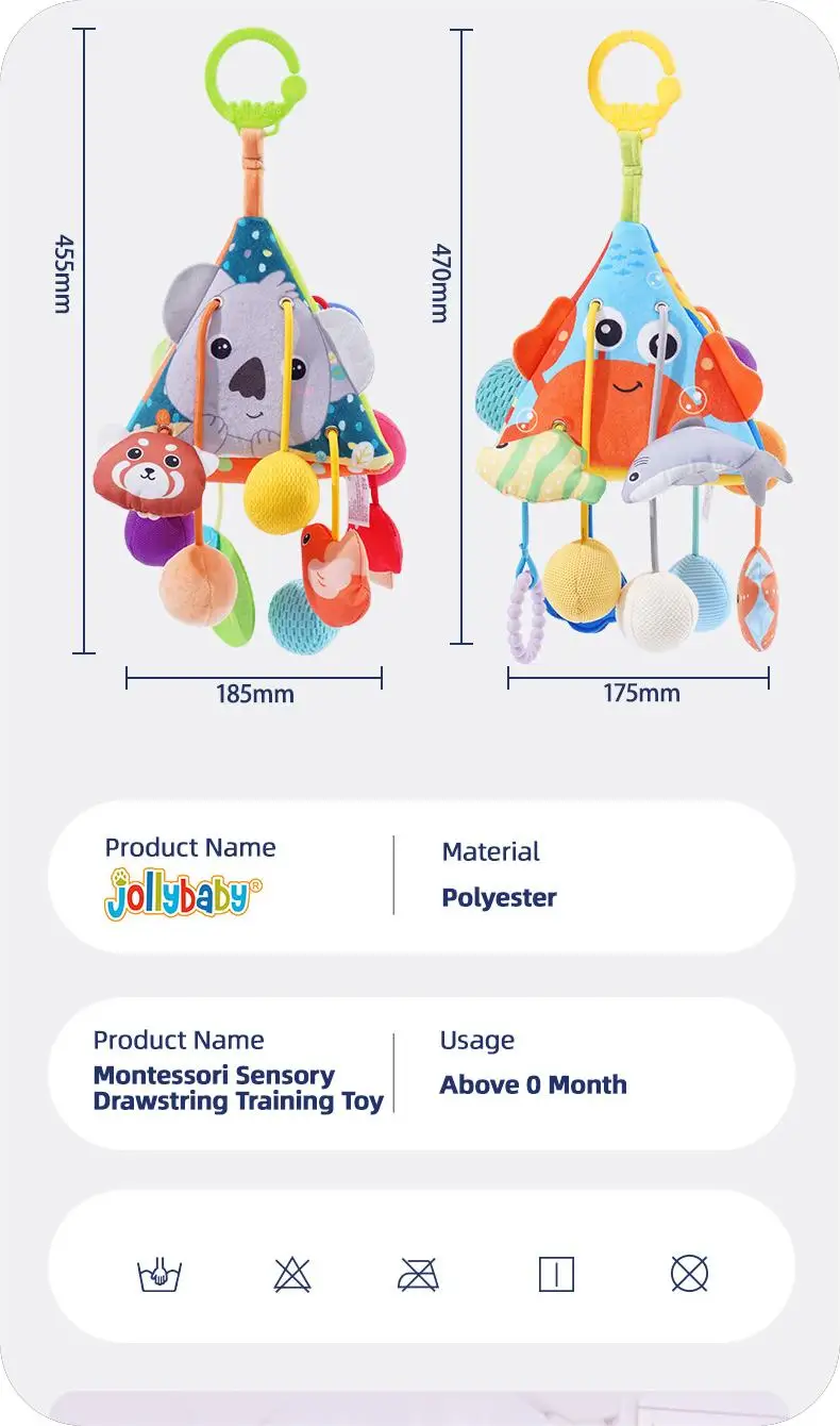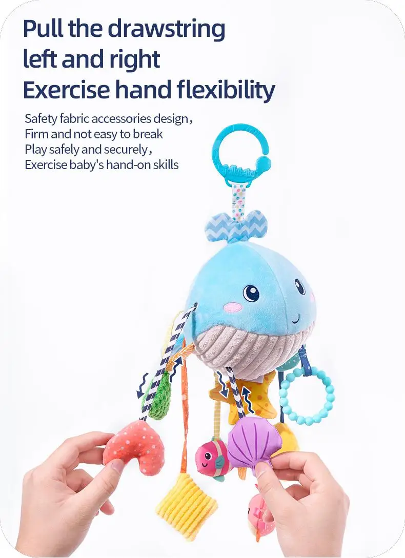 Jollybaby Custom Soft Activity Plush Toy Pull String Musical Sensory Hanging Toys for Toddlers Includes Teether Squeaker Set