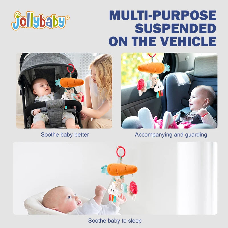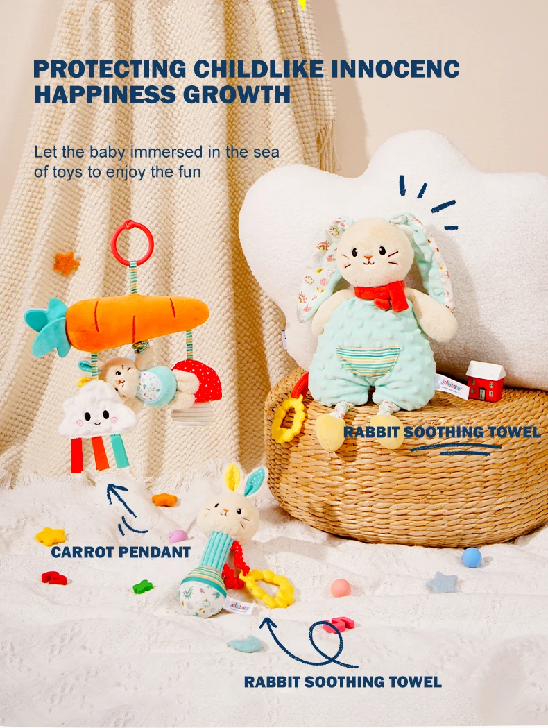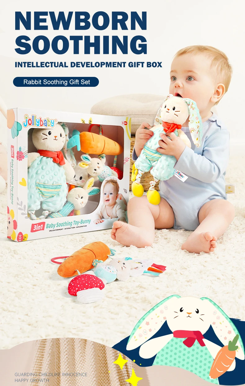 Jollybaby Custom Soft Plush Hand Rattle Baby Rattle Gift Set Newborn Hanging Toys Plastic Animal Toys Including a Stuffed Rabbit