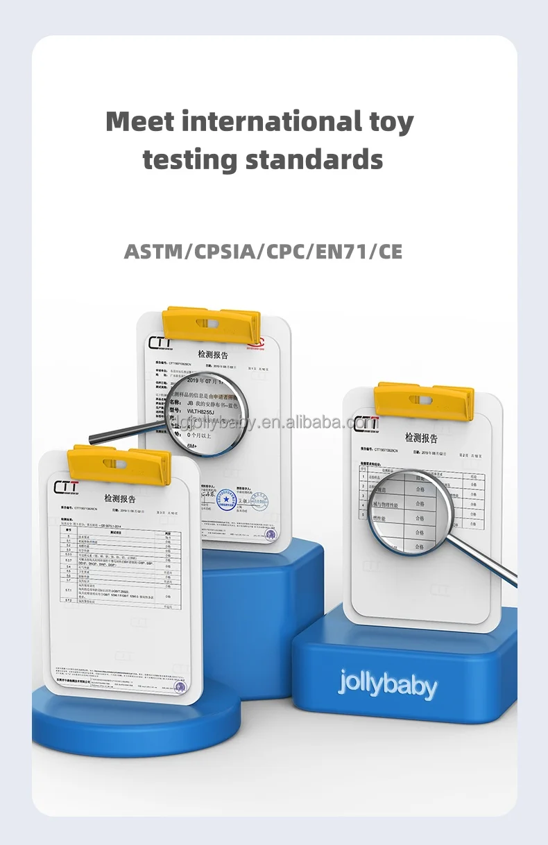 Jollybaby built to care about the security of baby development all over the world, so each toys need to be pass stricted inspection, which meet the Toy Standard as