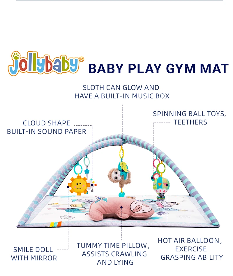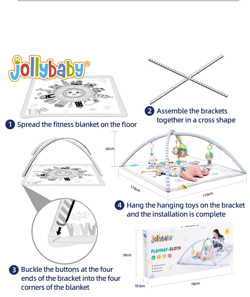 Jollybaby Eco-friendly Unisex Baby Activity Gym Mat Cotton Carpet Thicker Non-Slip Floor Mat Washable for Newborns Picnics