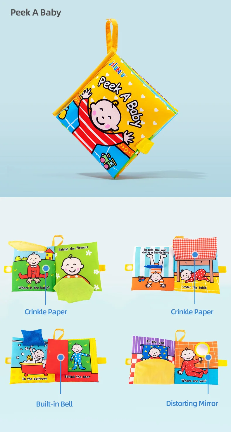 Jollybaby Fribic Activity Cloth Books Unisex Learning Toys Natural Preschool Baby Educational Soft Sensory Crinkle Peek a Baby