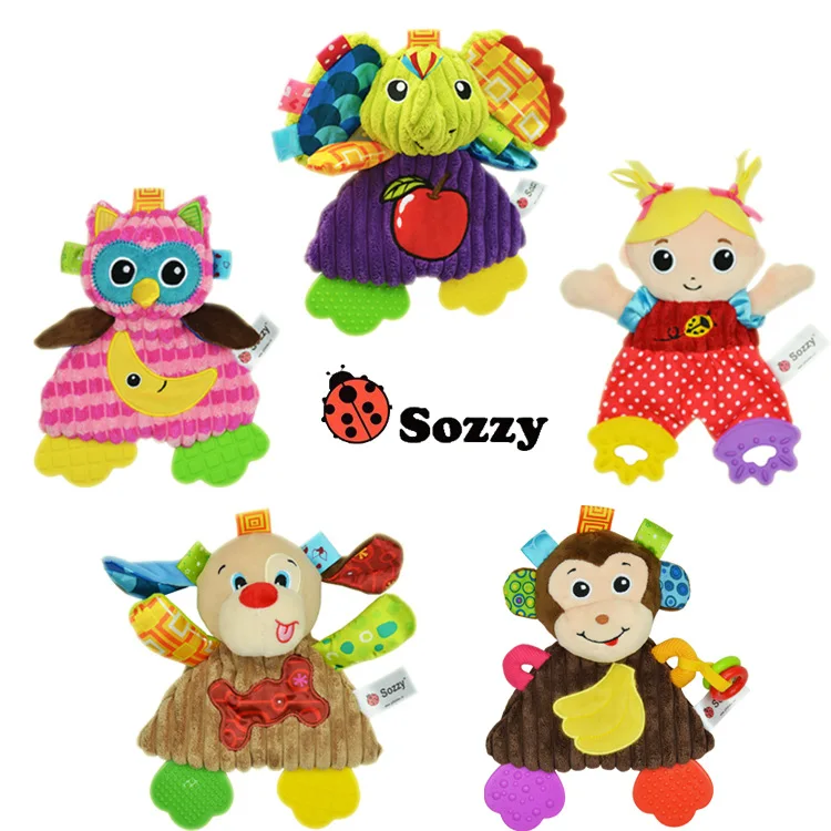 Jollybaby High Quality Dog Monkey lion Elephant Animal Soothing Baby Blanket Plush Security Baby Blanket with Teehter