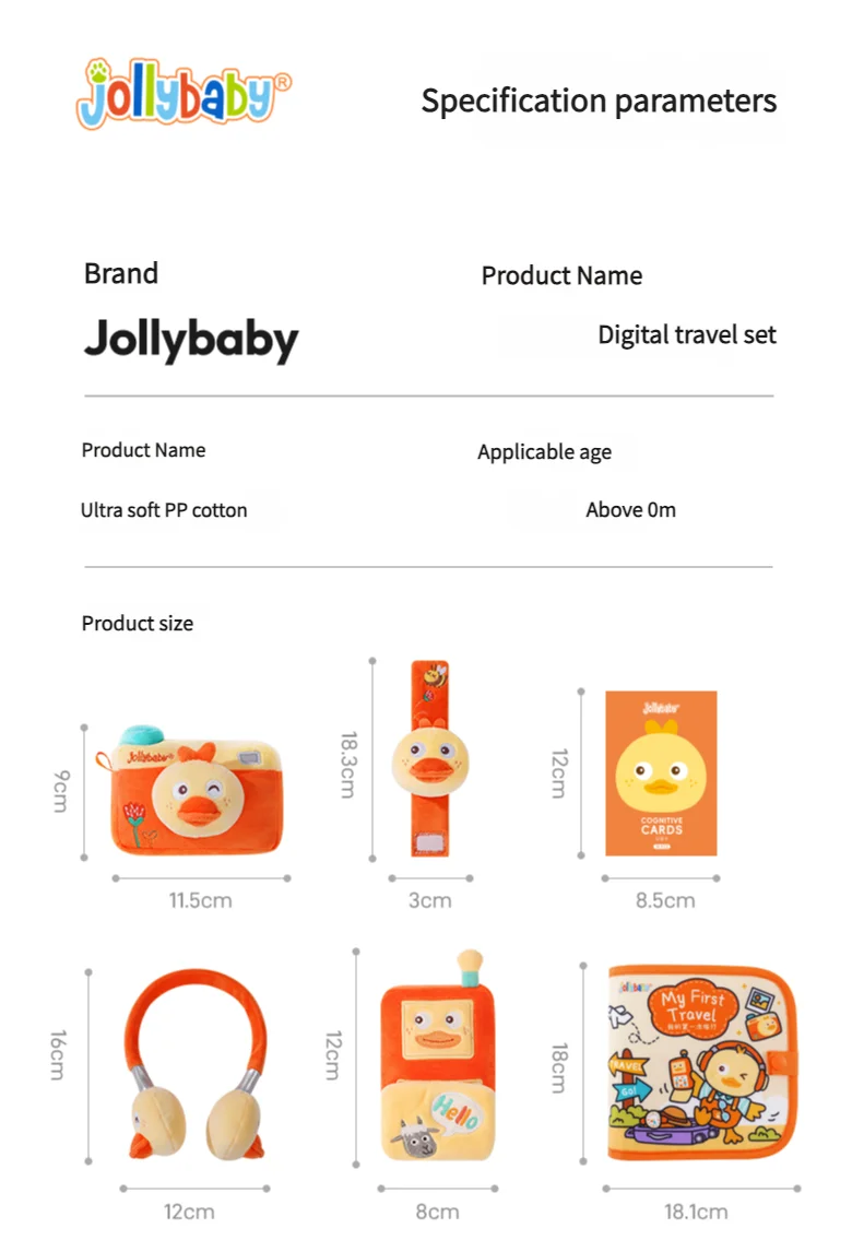 Jollybaby Interactive Sensory Toy for 0-3 Years Babies Soft Plush Early Learning Washable Non-Tearing for Pretend Play Preschool