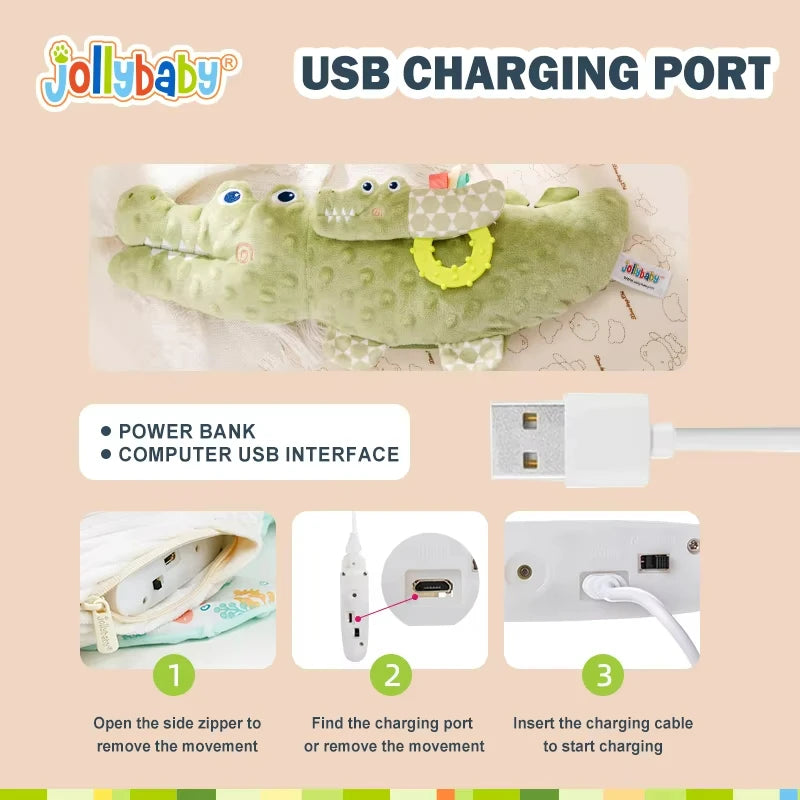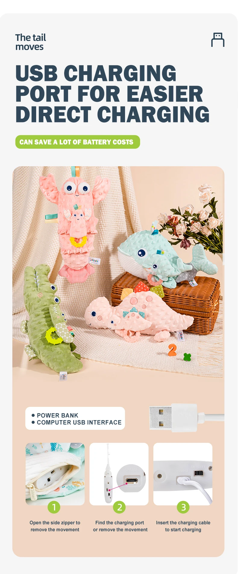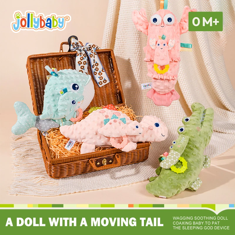 Jollybaby Manufacturer Baby Electric Soothing Toys Whale crocodile Animal Plush Toy with Wagging Tail for Sleeping Newborn Baby