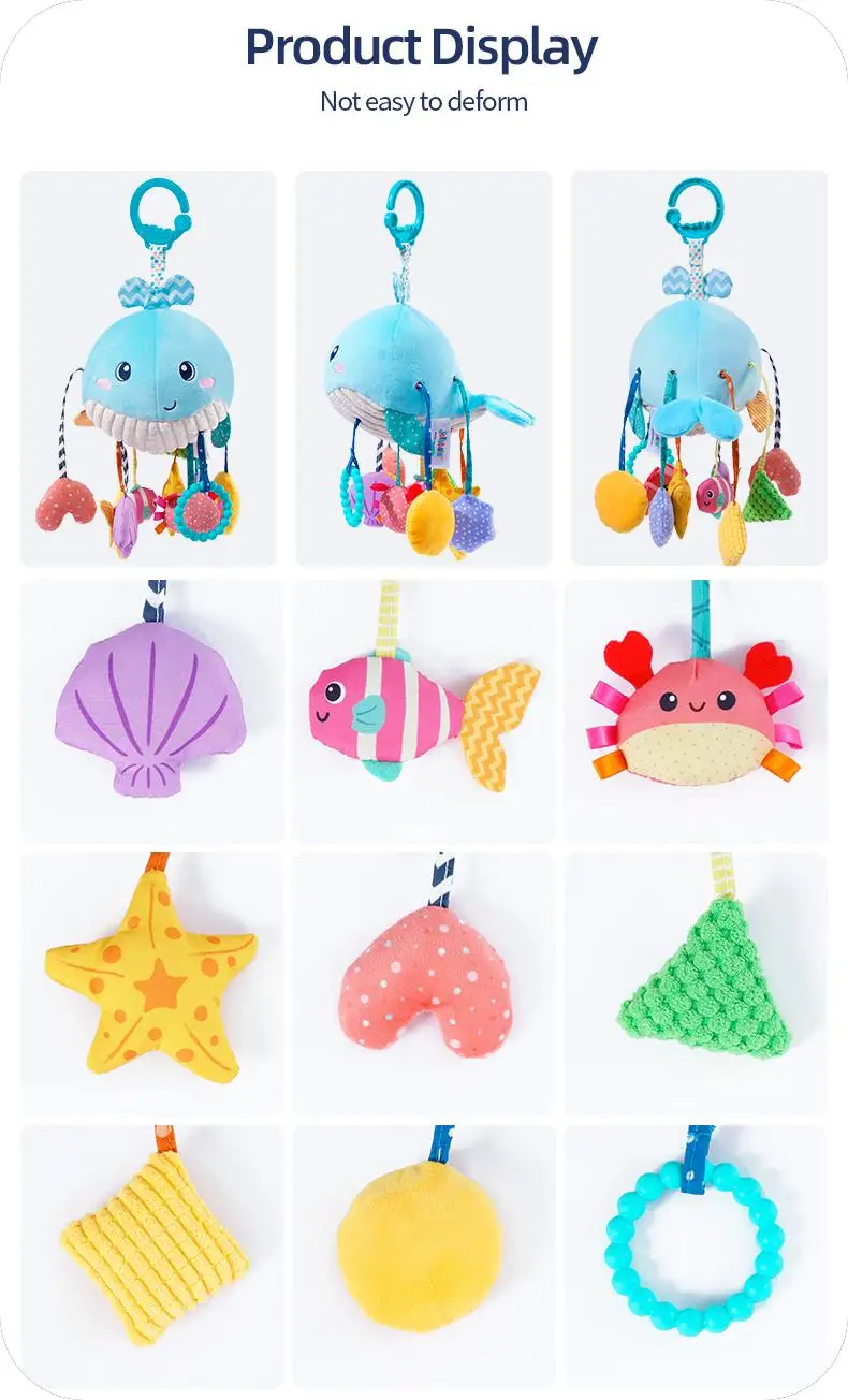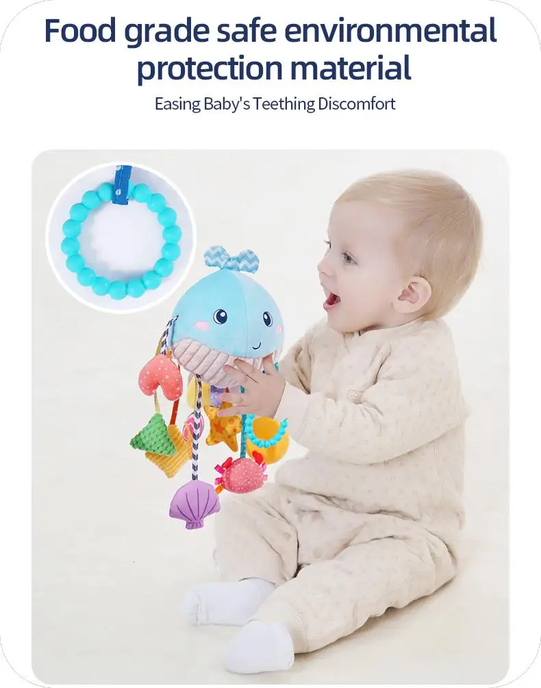 JOLLYBABY Montessori Baby Sensory Soothing Teether Soft Plush Stuffed Inflatable Toy Hanging Rattles for Soothing Entertaining