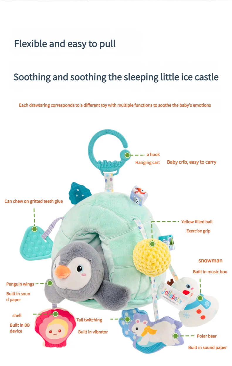 Jollybaby New Baby Bed Toy Cotton Stuffed Elephant Hanging Plush Activity Teether Rattle Bungee Cord Pull for Stroller Teething