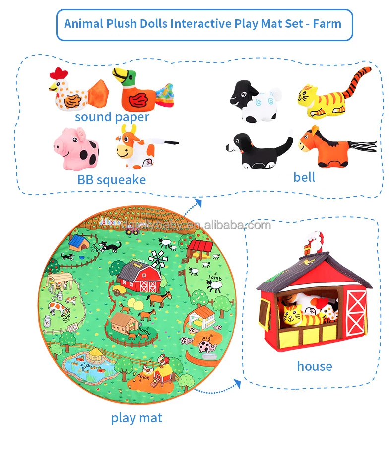 Jollybaby Newest Product Sound Making Farm Animal Dolls Play Mat