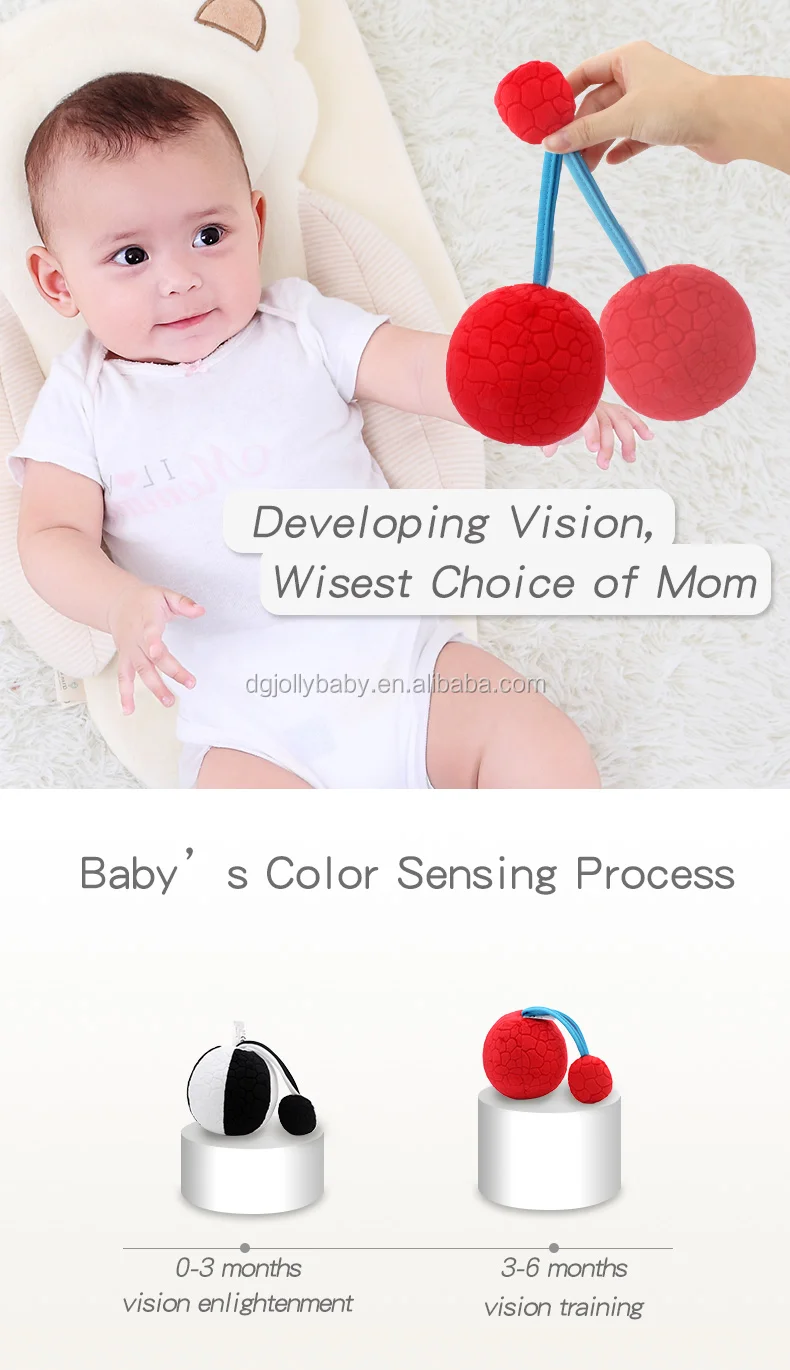 Jollybaby Sensory Soft Rattle Toy Early Education Development Visual Stuffed Ball for 0-3 Months Baby Black White Red