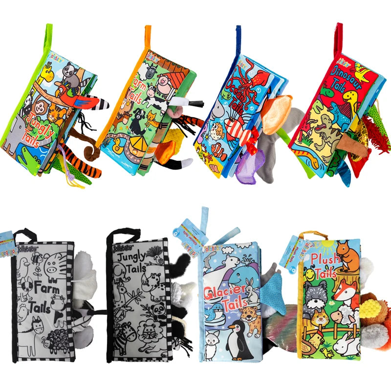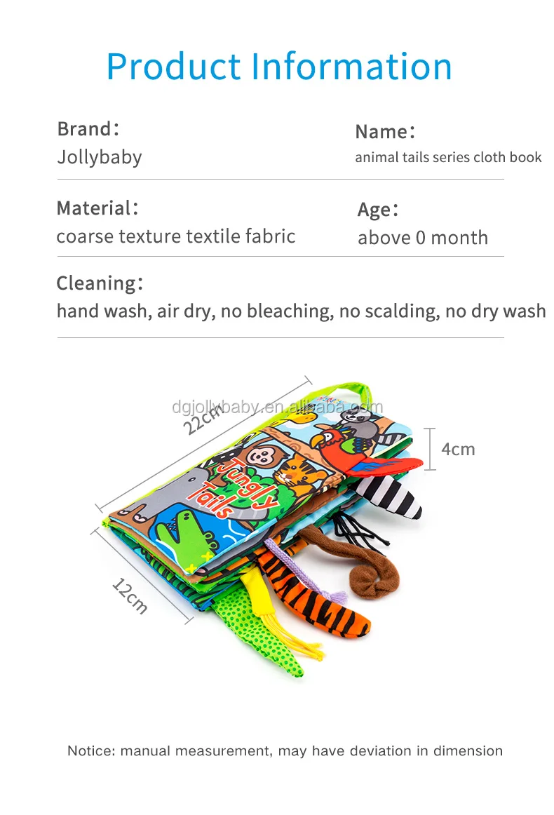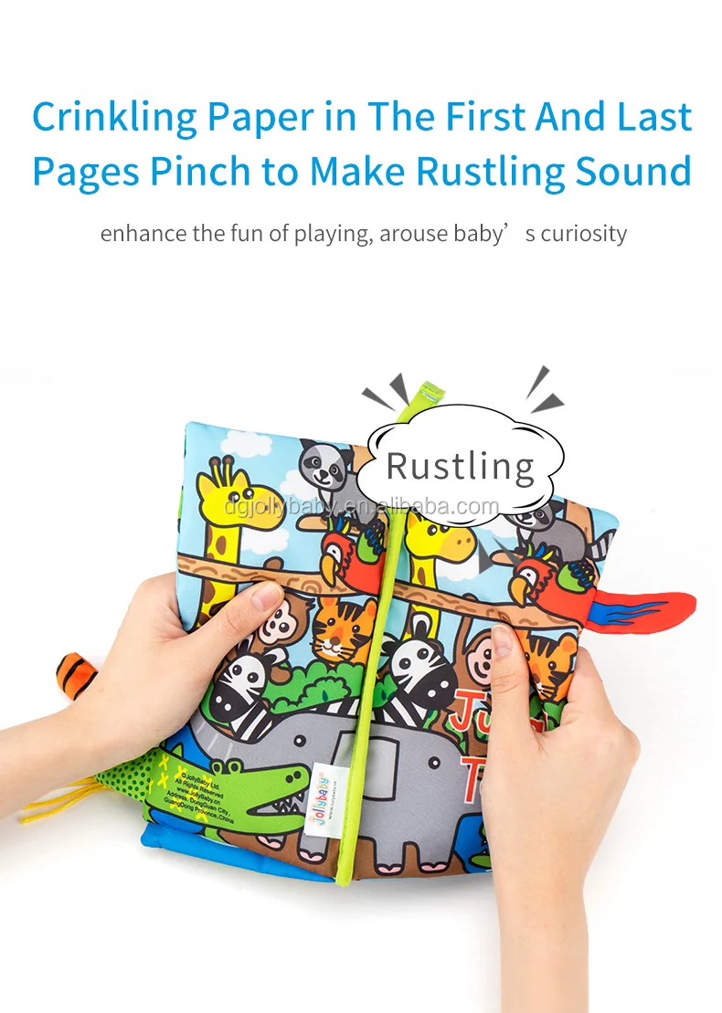Jollybaby Top Selling Crinkle Paper Cloth Washable Animal Soft Tails Early Sensory Educational Jelly Cat Baby Books Toys Fabric