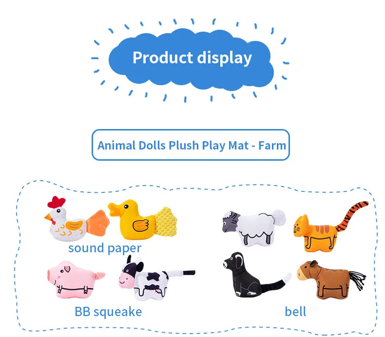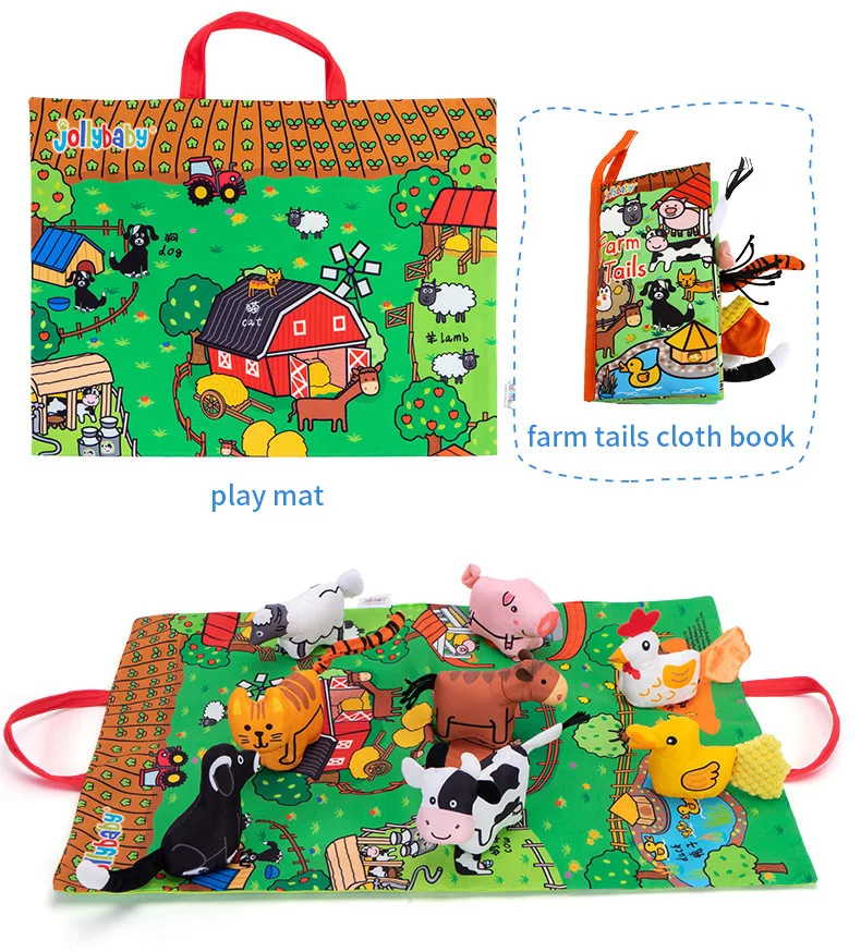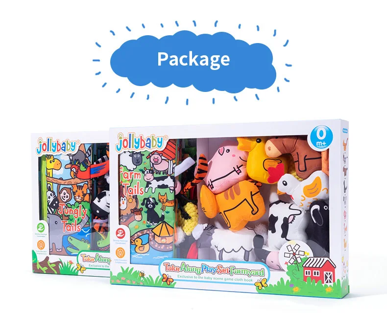 Jollybaby Touch 3D Stuffed Animal Doll Jungle Education Baby Soft Fabric Cloth Book Pretend Play Toys for Kids