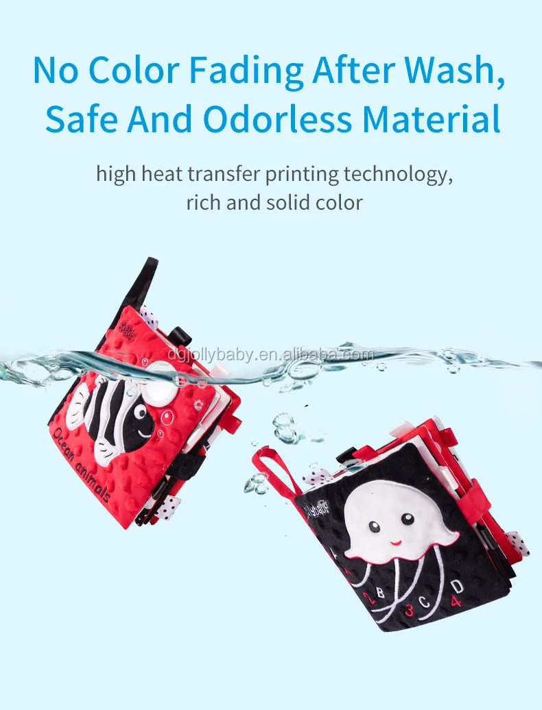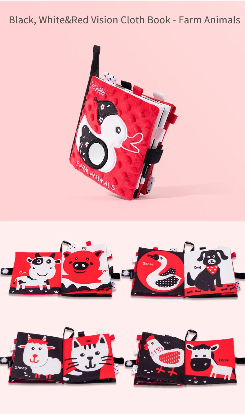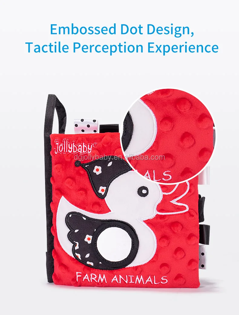 Jollybaby Unisex Soft-Colored Cloth Book for Kids Sensory Hearing Vision Development Natural Large Stock Separates Box + PE Bag