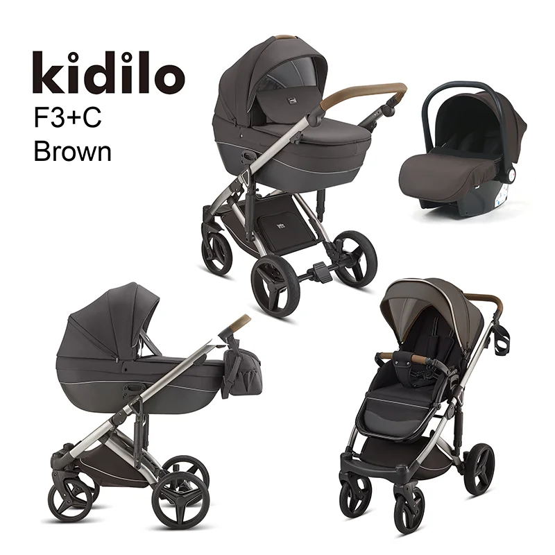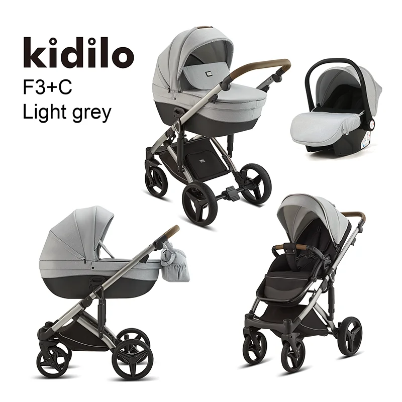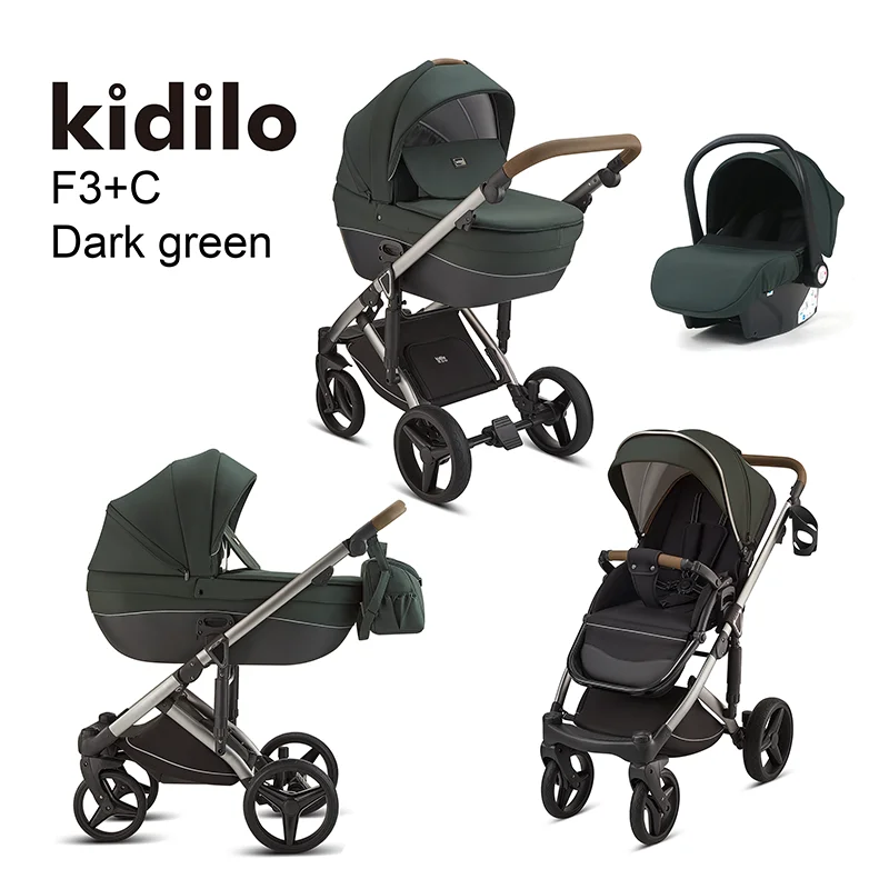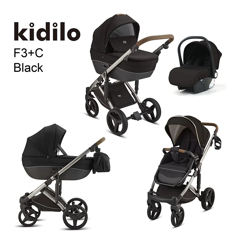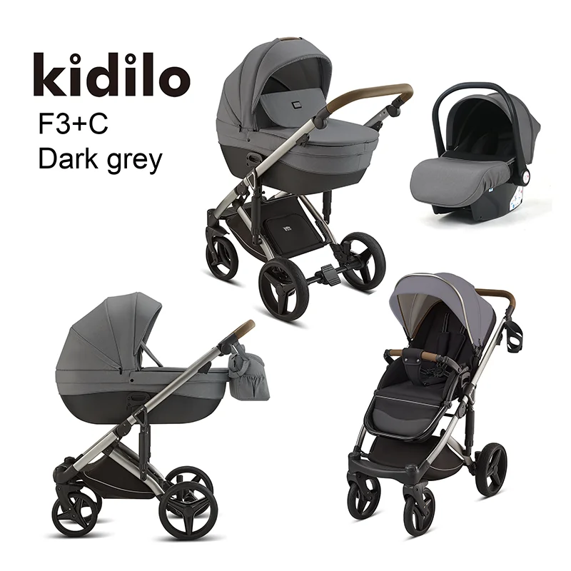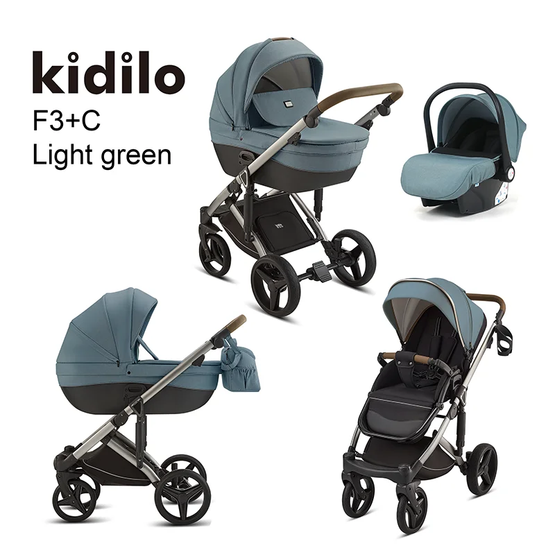 Kidilo 0-3 Years 3 in 1 Baby Stroller with Car Seat Non-Toxic Durable Foldable Travel Stroller for Toddlers Family Trips F3+C