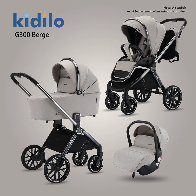 Kidilo 0-3 Years 3 in 1 Baby Stroller with Car Seat Non-Toxic Durable Foldable Travel Stroller for Toddlers Family Trips G300