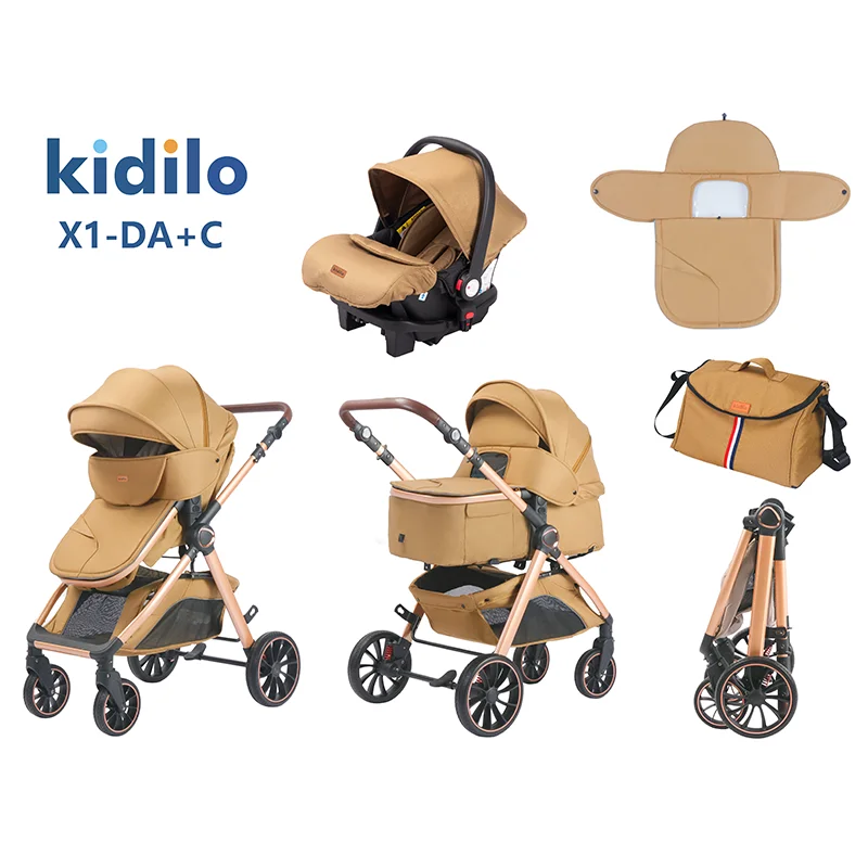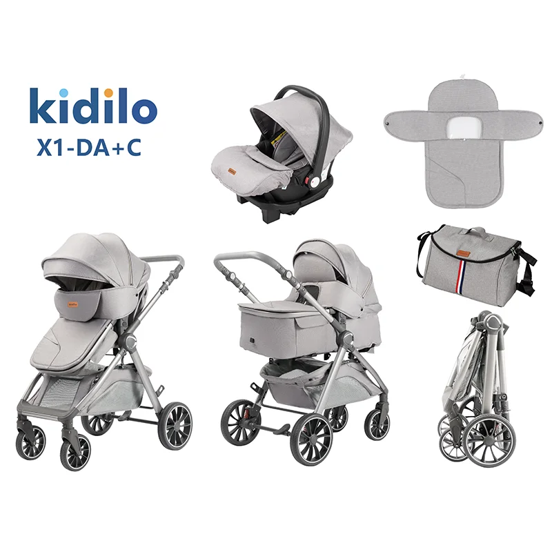 Kidilo 0-3 Years 3 in 1 Baby Stroller with Car Seat Non-Toxic Durable Foldable Travel Stroller for Toddlers Family Trips X1-DA+C