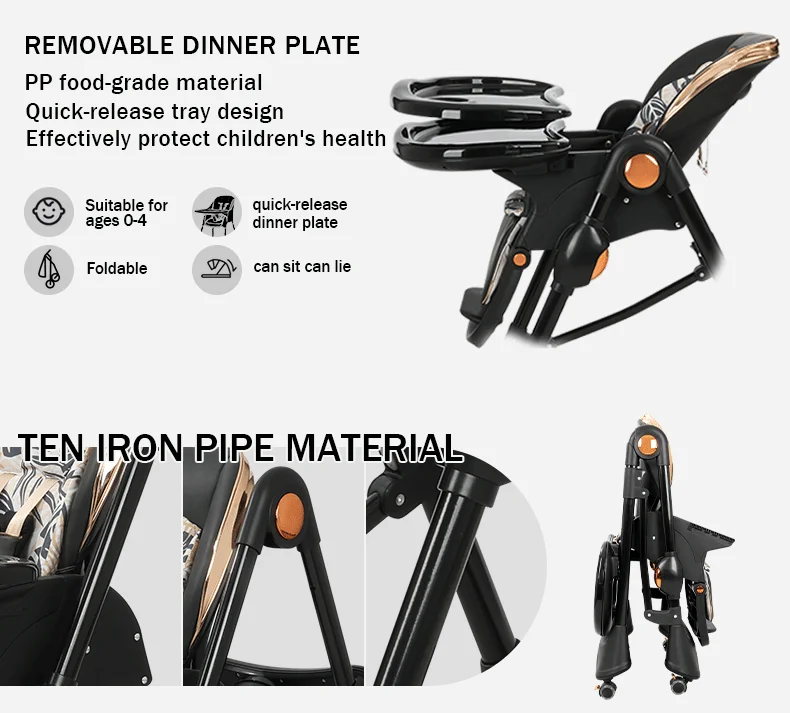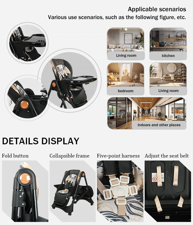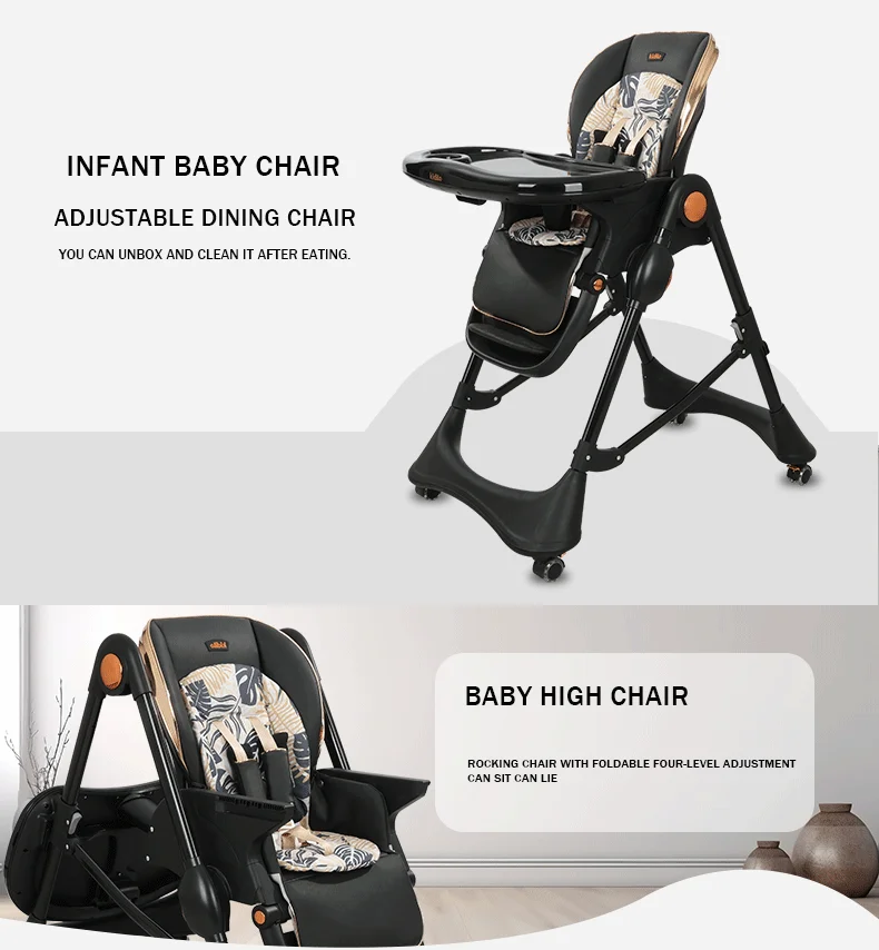 Kidilo 6-36 Months 3 in 1 Foldable Baby High Chair for Infants Non-Toxic Feeding Chair for Toddler Home Small Space Dining KD202
