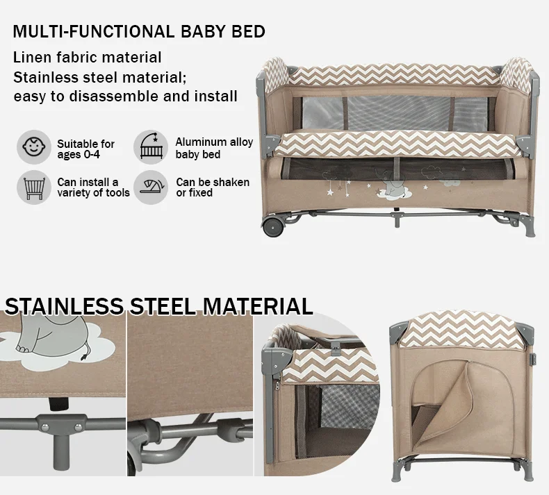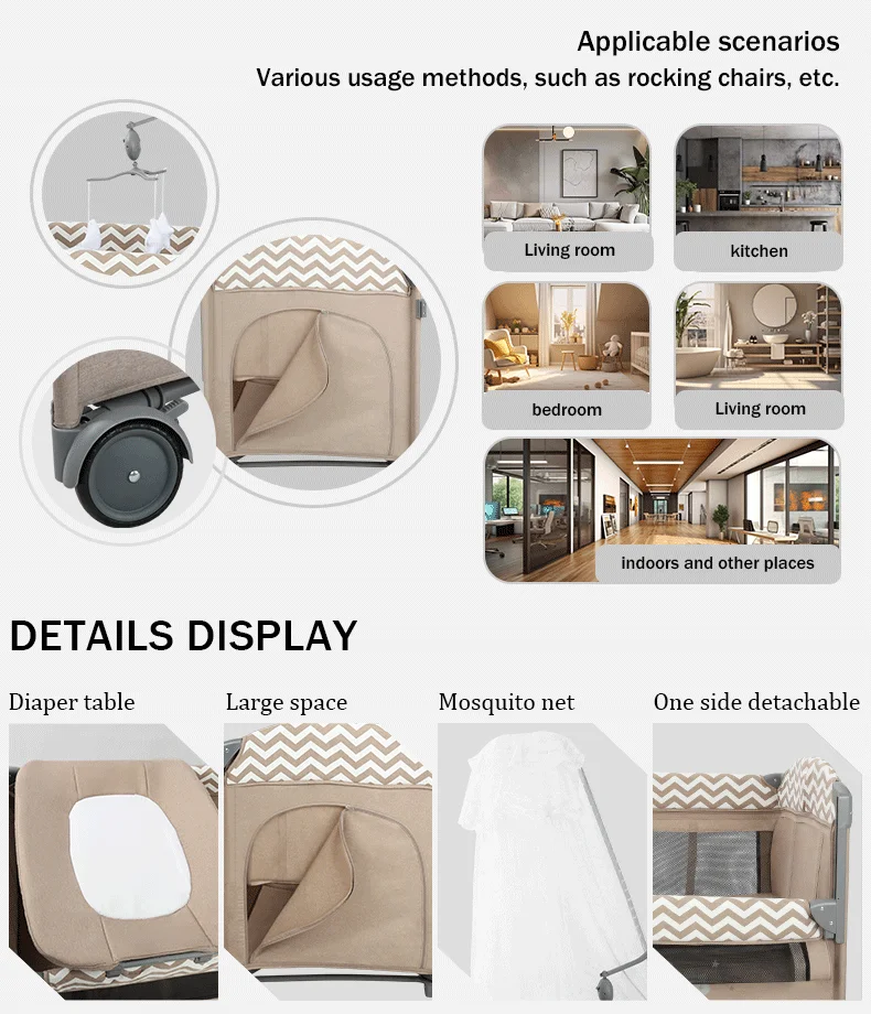Kidilo Baby Cribs Side Baby Crib | Foldable Play Crib with Multi-Function Design for Newborns Babiescrib for Babies T-701L