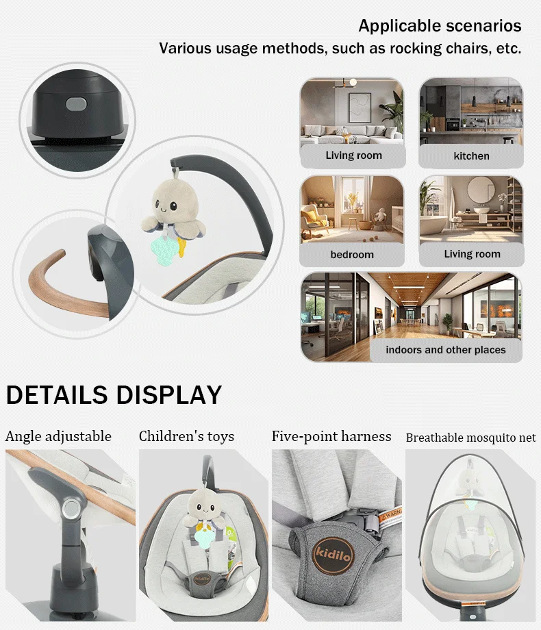Kidilo Baby Rocking Chair Bouncer New Bor Baby Cradle Sleeping Swing Chair Electric Automatic Bed for Babies Horse Chair BY058