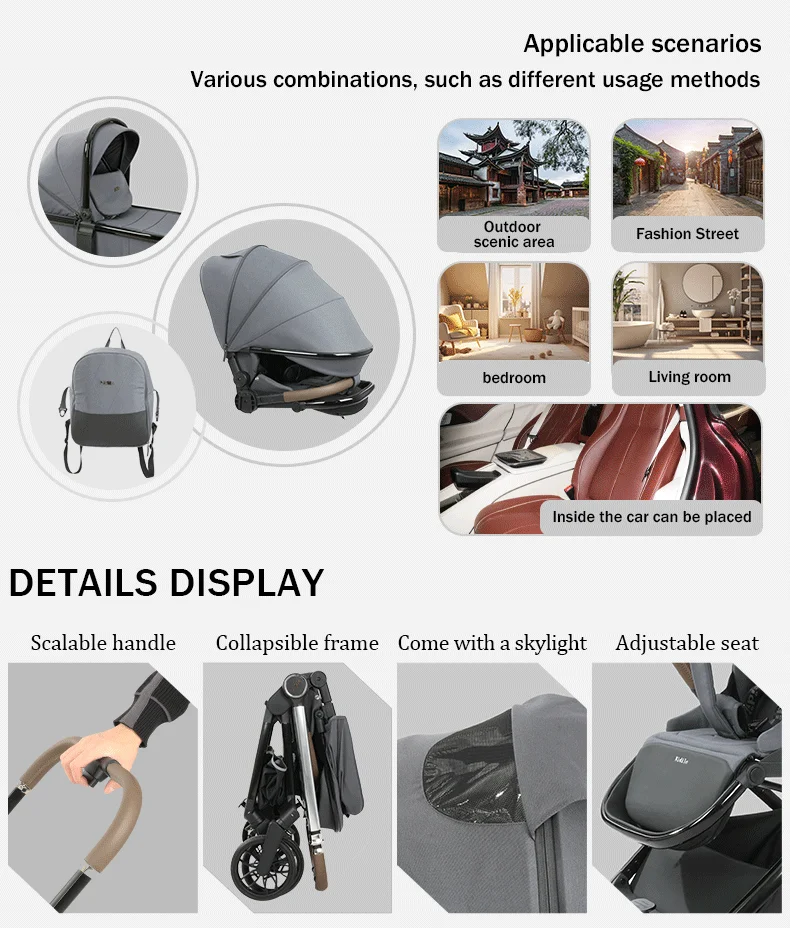 Kidilo Baby Stroller Multiple Luxury Travel Folding Wagon Baby Stroller 2 in 1 with Car Seat Set for Babies Wholesale D900 2B1